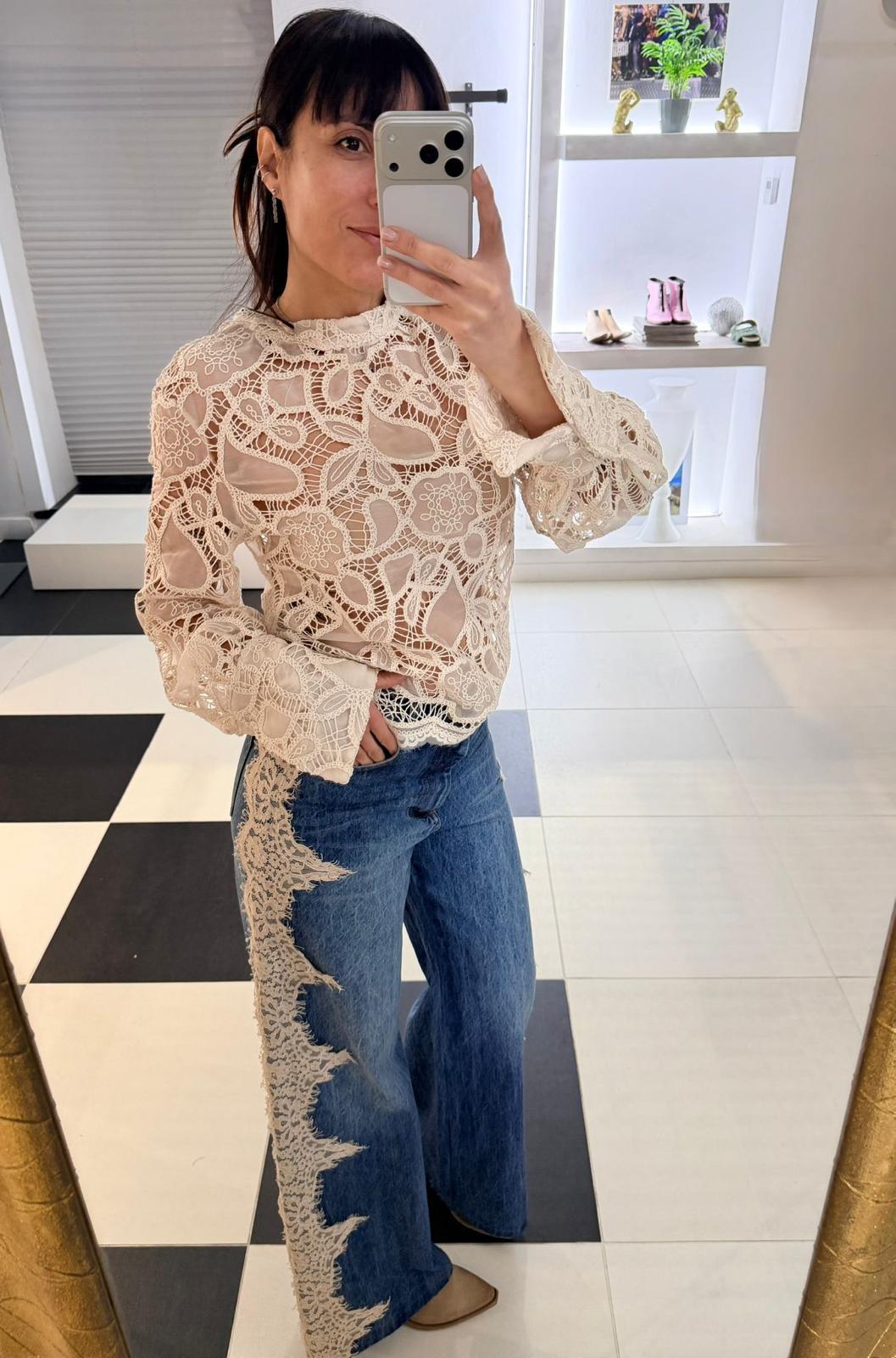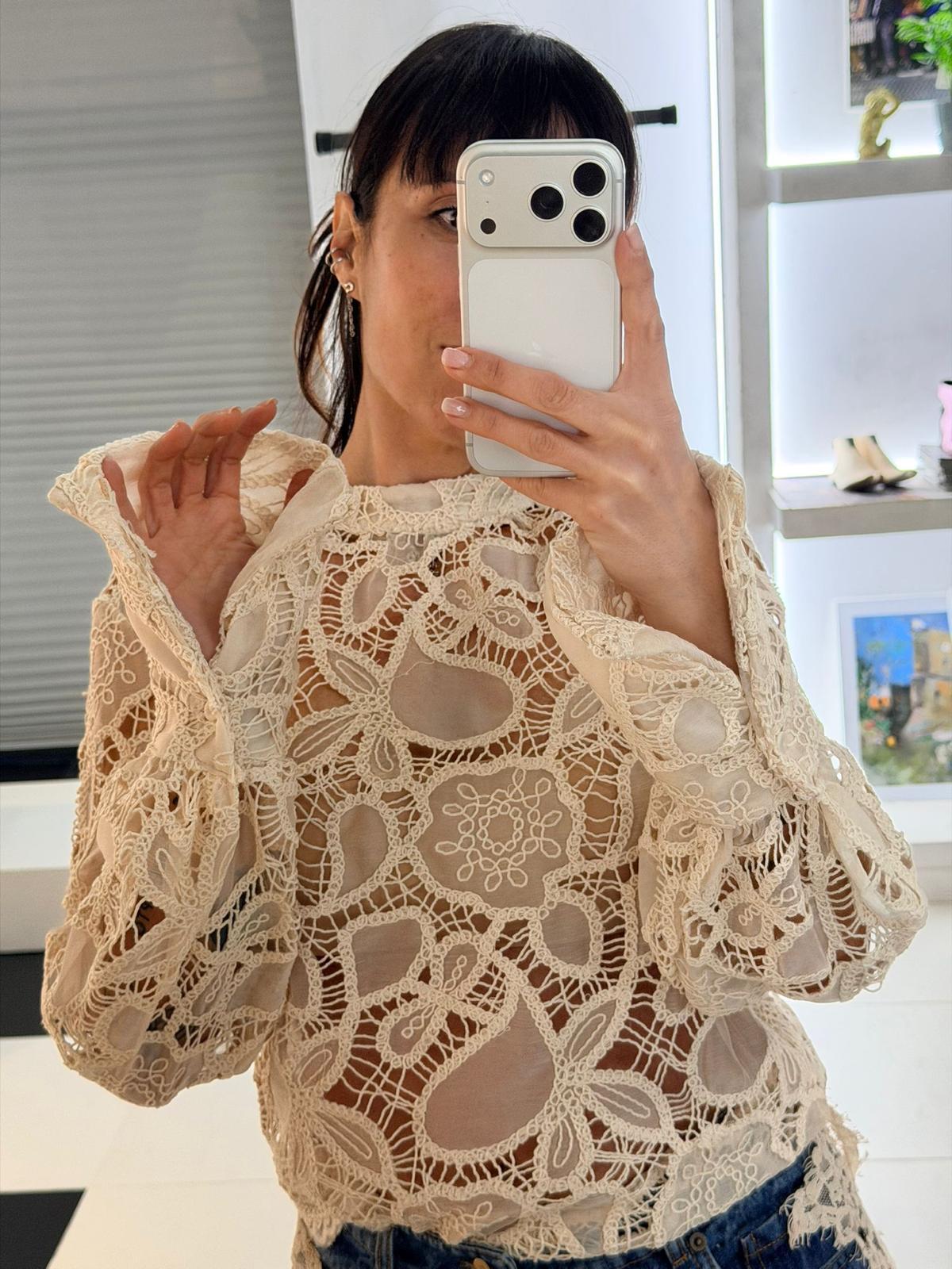 BLUSA BURRO IN PIZZO TENSIONE IN