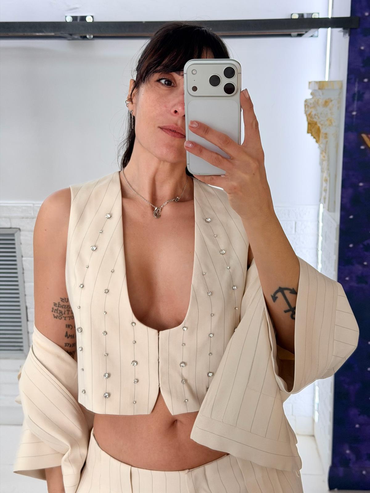 GILET GESSATO CON RICAMI GIOIELLO LIUJO