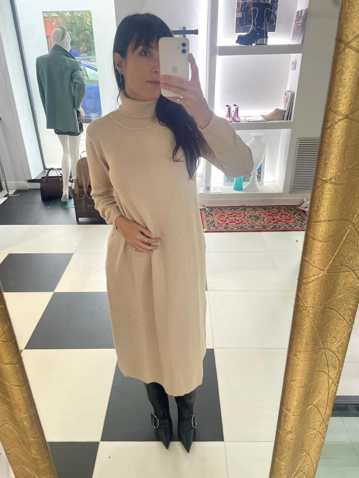 Raffinato e minimal, questo abito a maglia è un must-have per la stagione fredda. Realizzato in un tessuto morbido e confortevole, presenta un elegante collo alto e maniche lunghe che donano un tocco sofisticato.