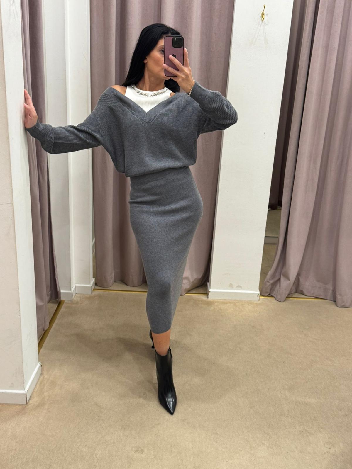 ABITO GRIGIO CON RICAMI GIOIELLO LIUJO