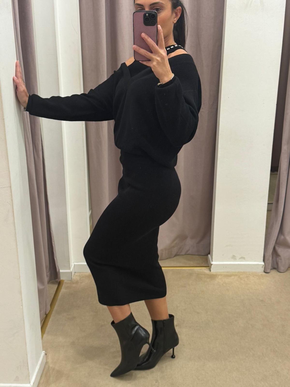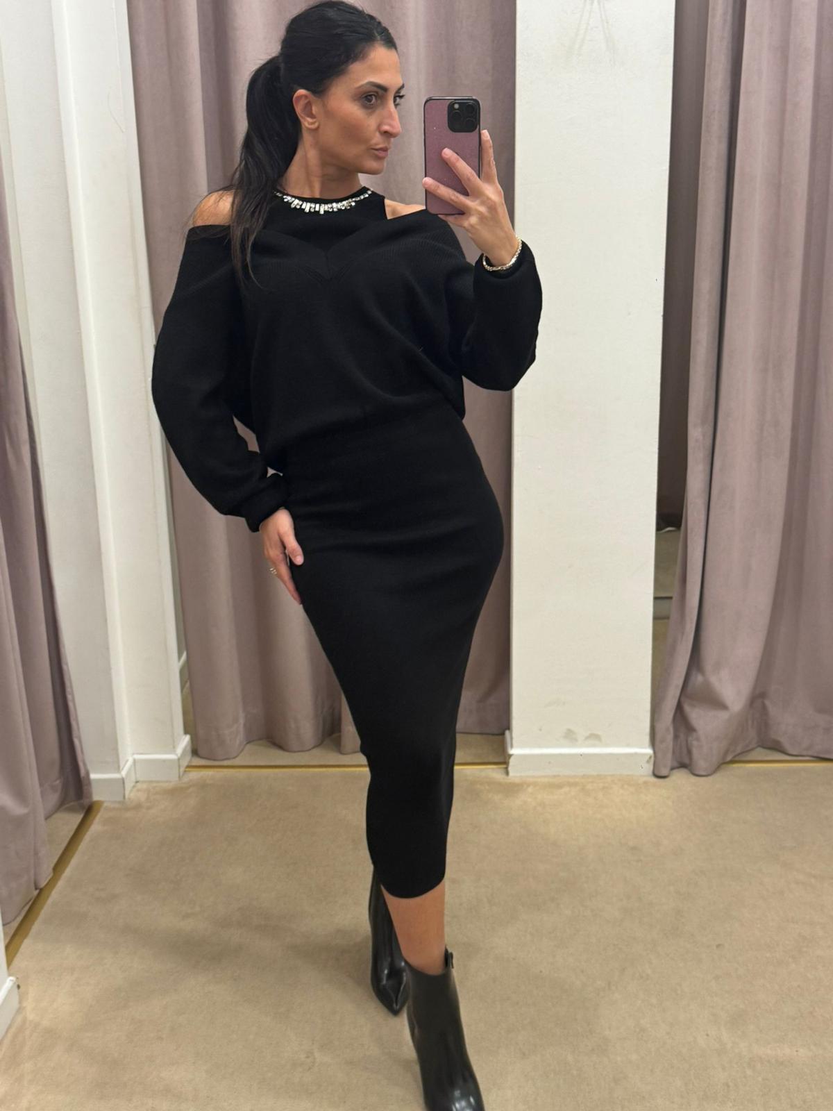 ABITO IN MAGLIA NERA CON RICAMI GIOIELLO LIUJO
