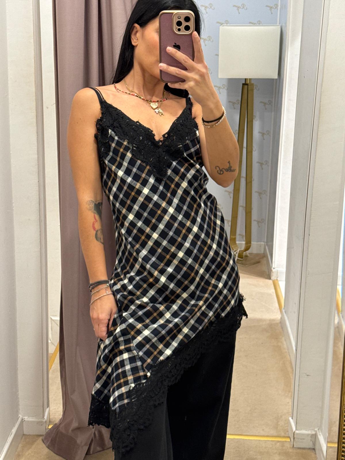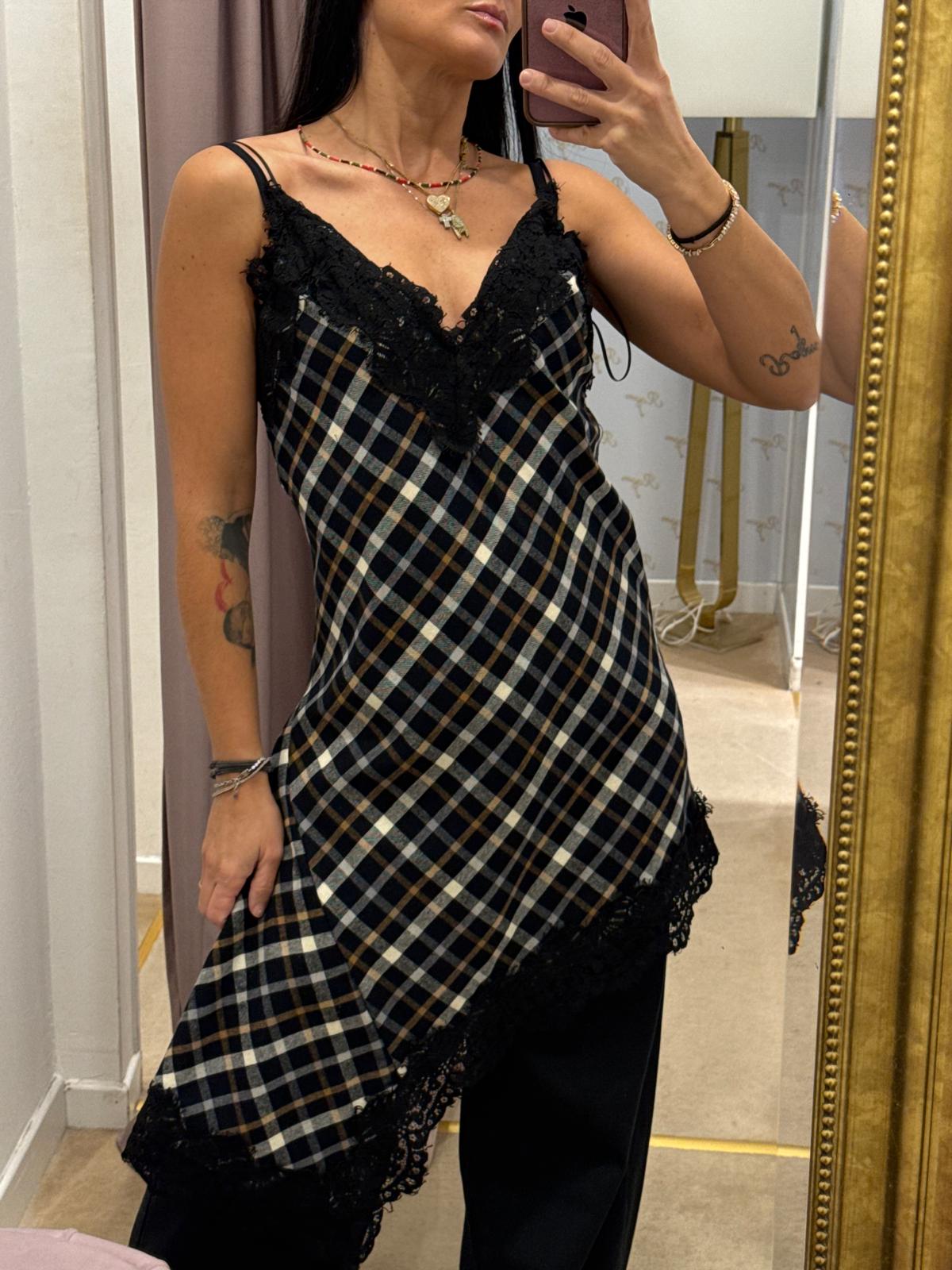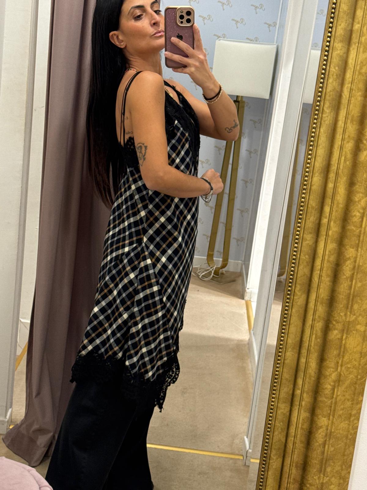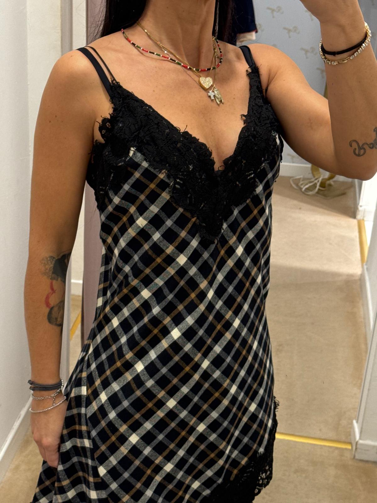 • Dettagli: Raffinato pizzo nero su scollo e orlo.