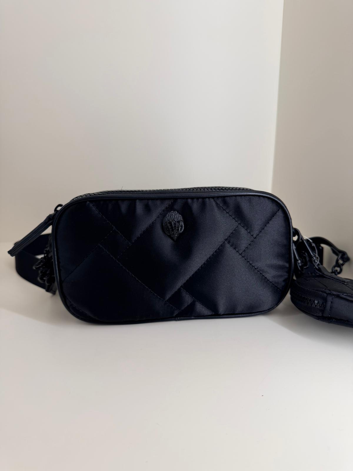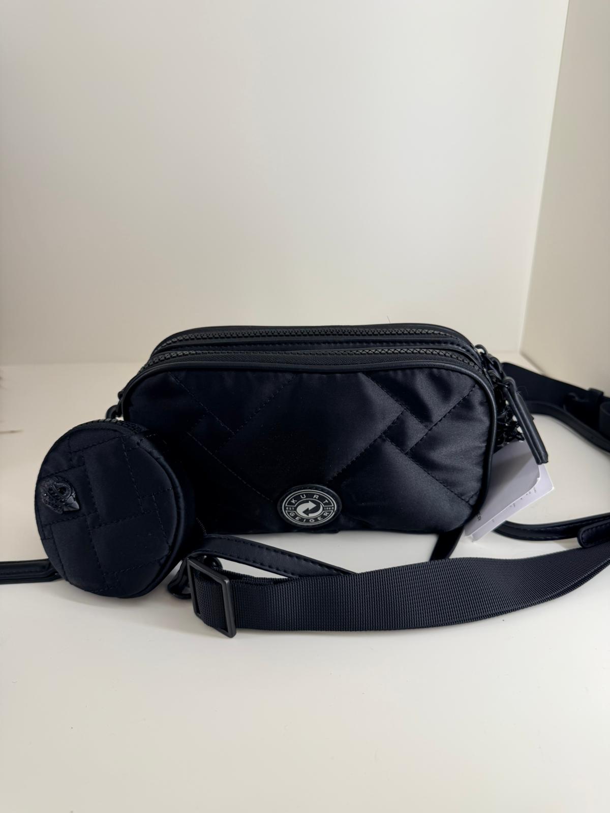Borsa a tracolla regolabile, in tessuto tecnico, dotata di due zip e scomparti interni.