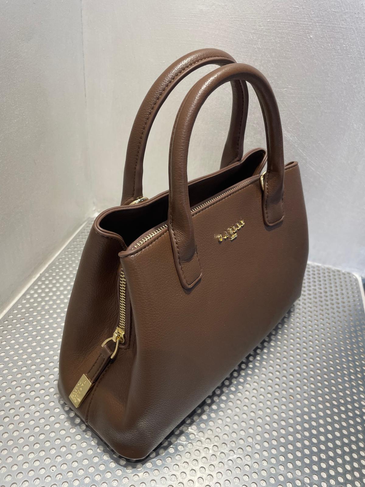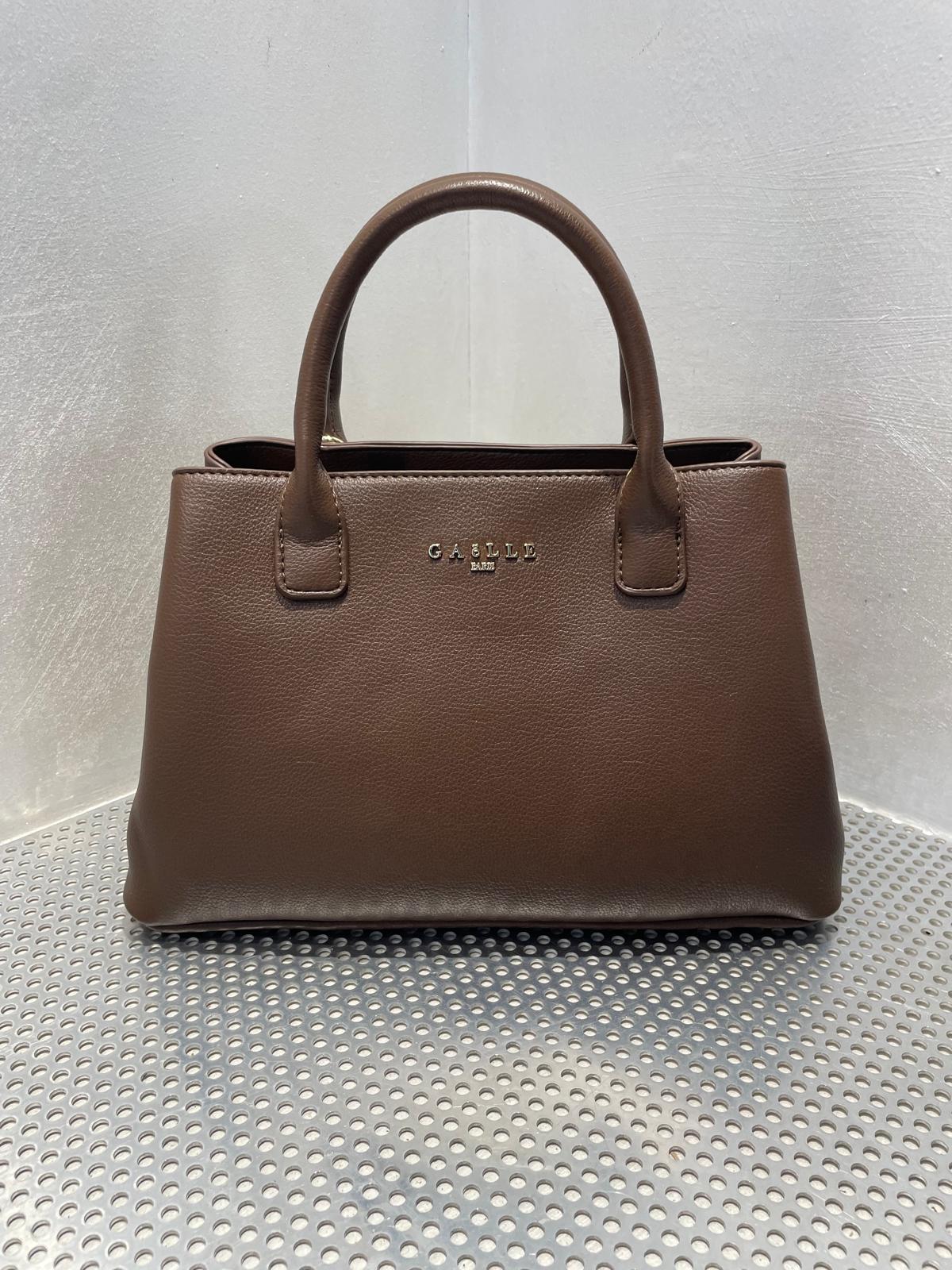 Borsa in ecopelle con doppi manici e tracolla regolabile logata Gaëlle. Chiusura con zip e interno spazioso. Stile pulito e moderno per ogni occasione.
