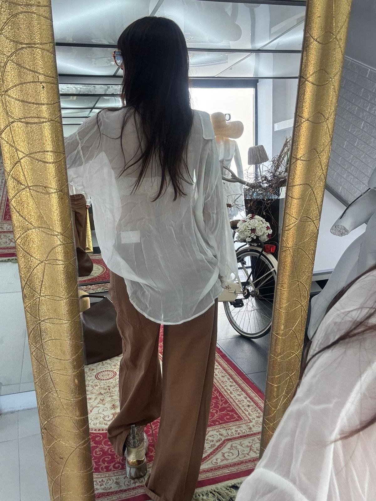 • Dettagli: colletto con fiocco annodato, maniche ampie e fluide, chiusura con piccoli bottoni centrali.