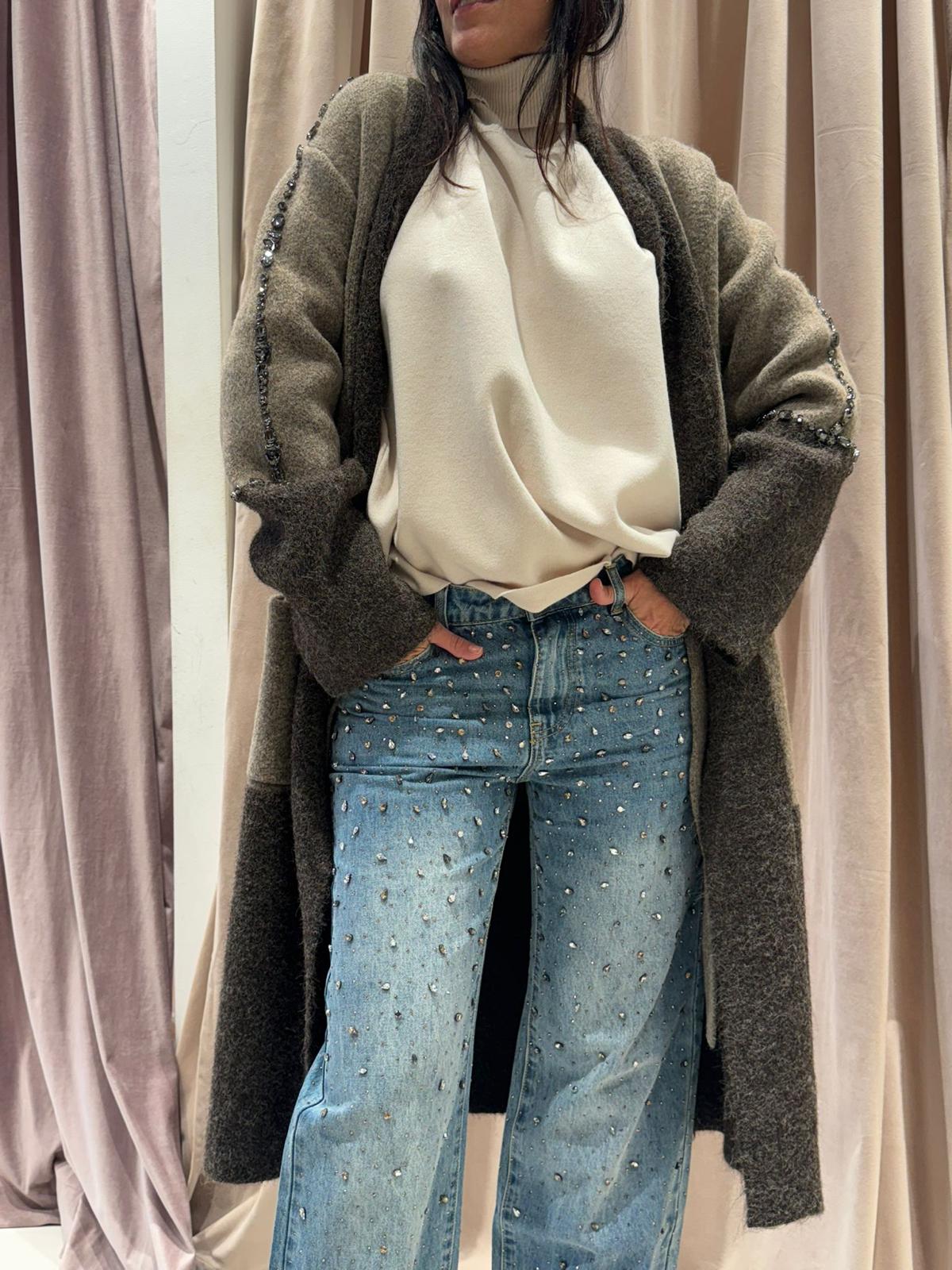 CARDIGAN LUNGO CON DETTAGLI DI PERLINE VICOLO