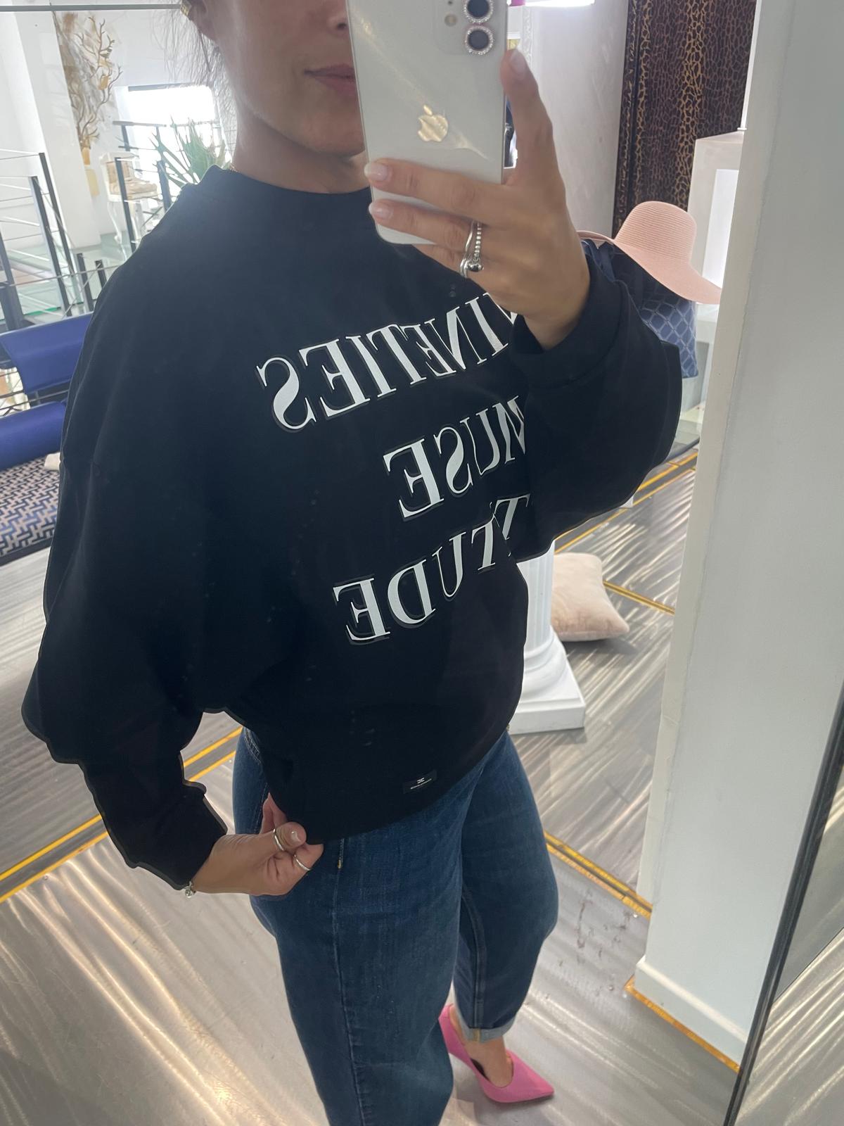 FELPA NERA CON STAMPA LETTERING ELISABETTA FRANCHI