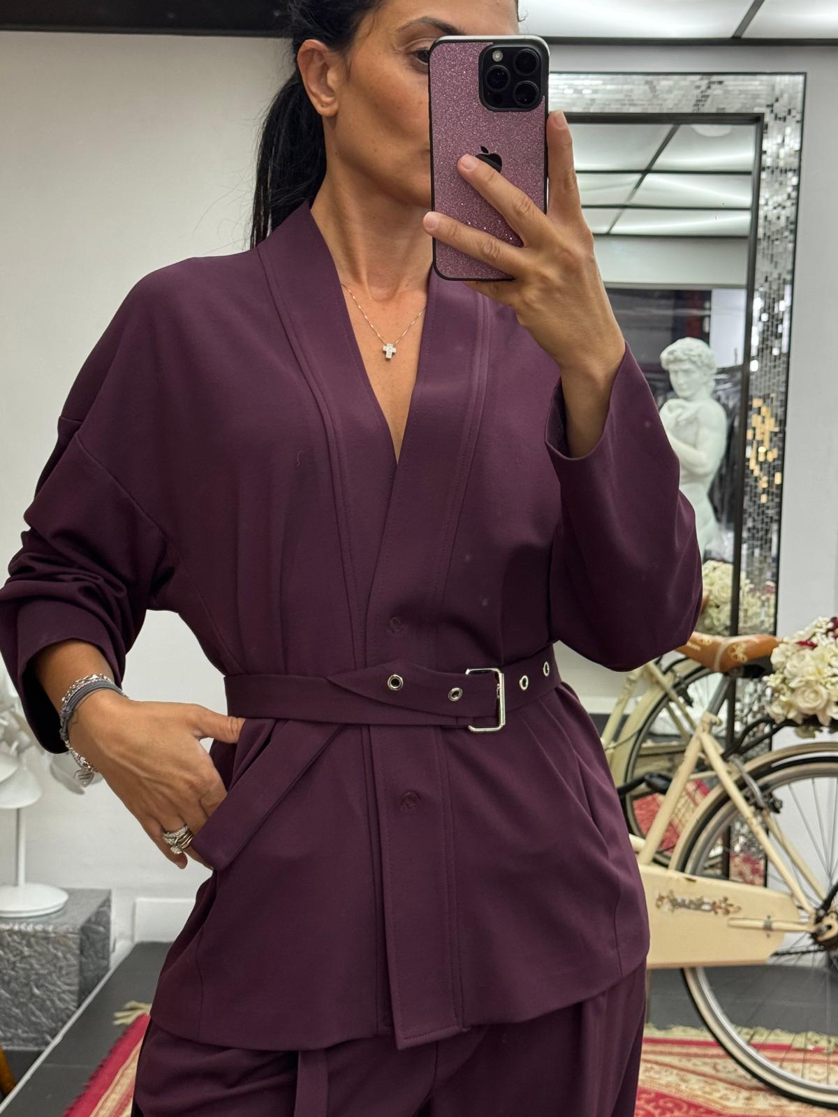 GIACCA CON CINTURA PRUGNA IMPERIAL