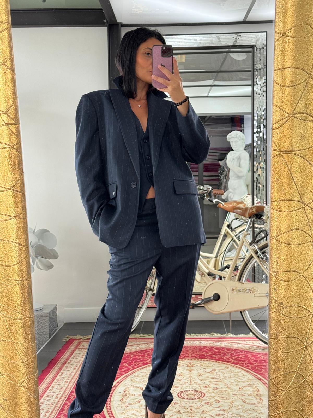 Un look business chic, elegante e deciso valorizzato da mini paillettes.