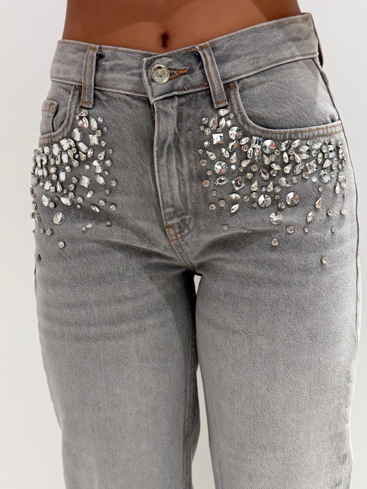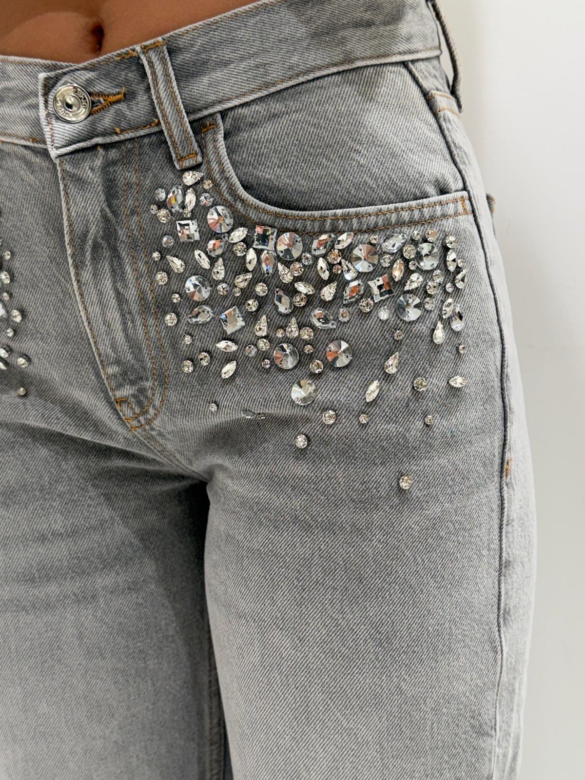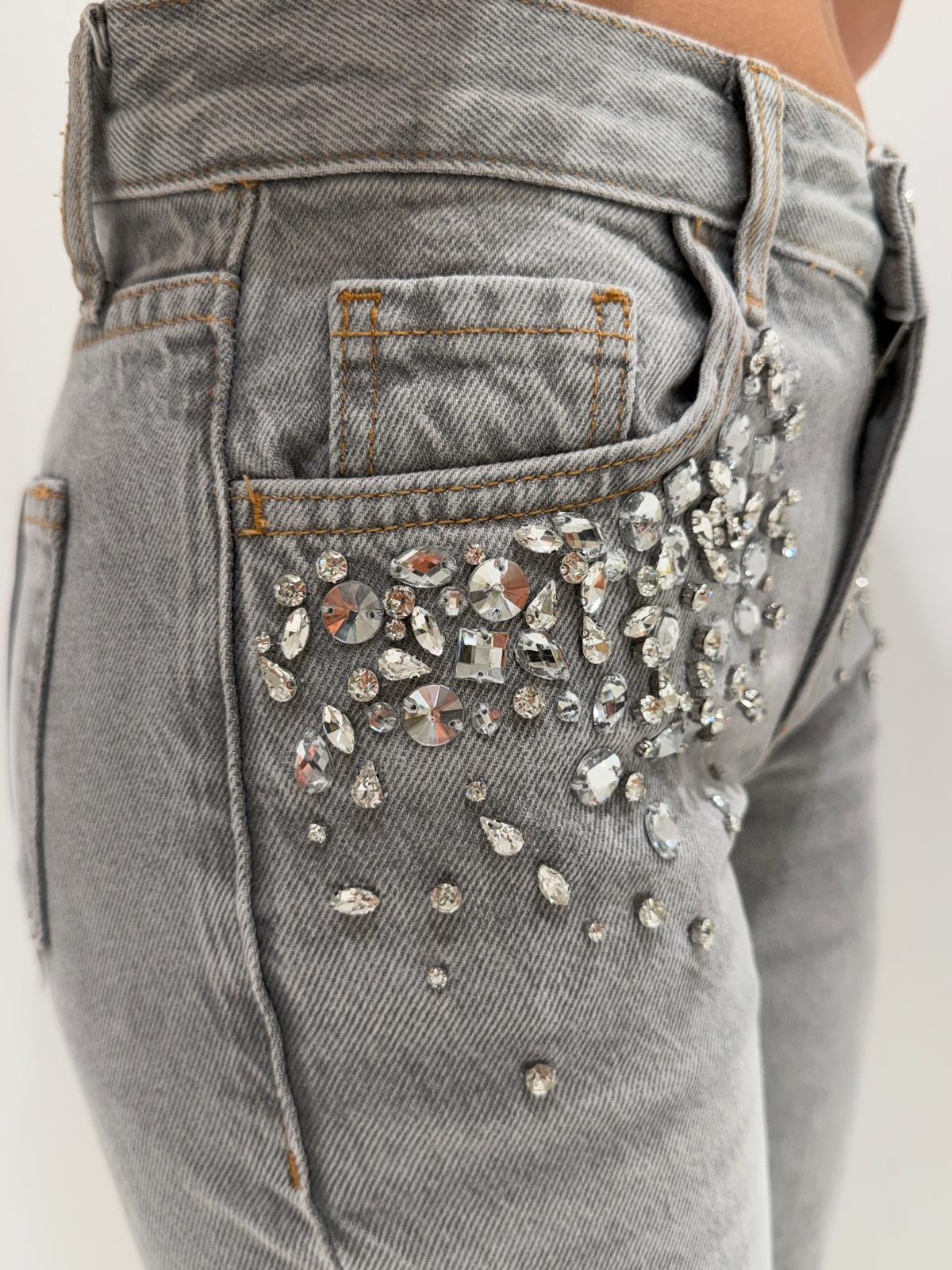• Dettagli: Ricami e applicazioni di strass e pietre luminose nella zona frontale superiore, che donano un tocco glam. Orlo inferiore leggermente sfrangiato.