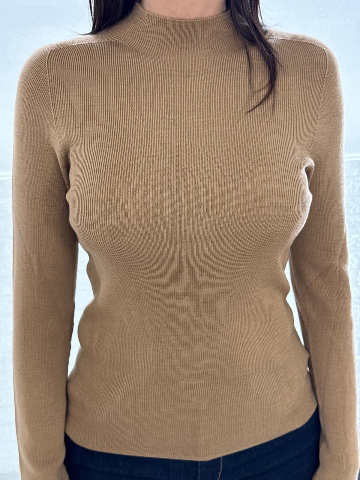 Realizzata in filato stretch a coste sottili, questa maglia presenta una linea morbida e aderente al punto giusto. Il collo leggermente alto incornicia il viso con discrezione, mentre il tessuto elasticizzato garantisce comfort e libertà di movimento. Un capo essenziale nel guardaroba quotidiano, perfetto sotto giacche, gilet o capispalla per un’eleganza pulita e senza tempo.