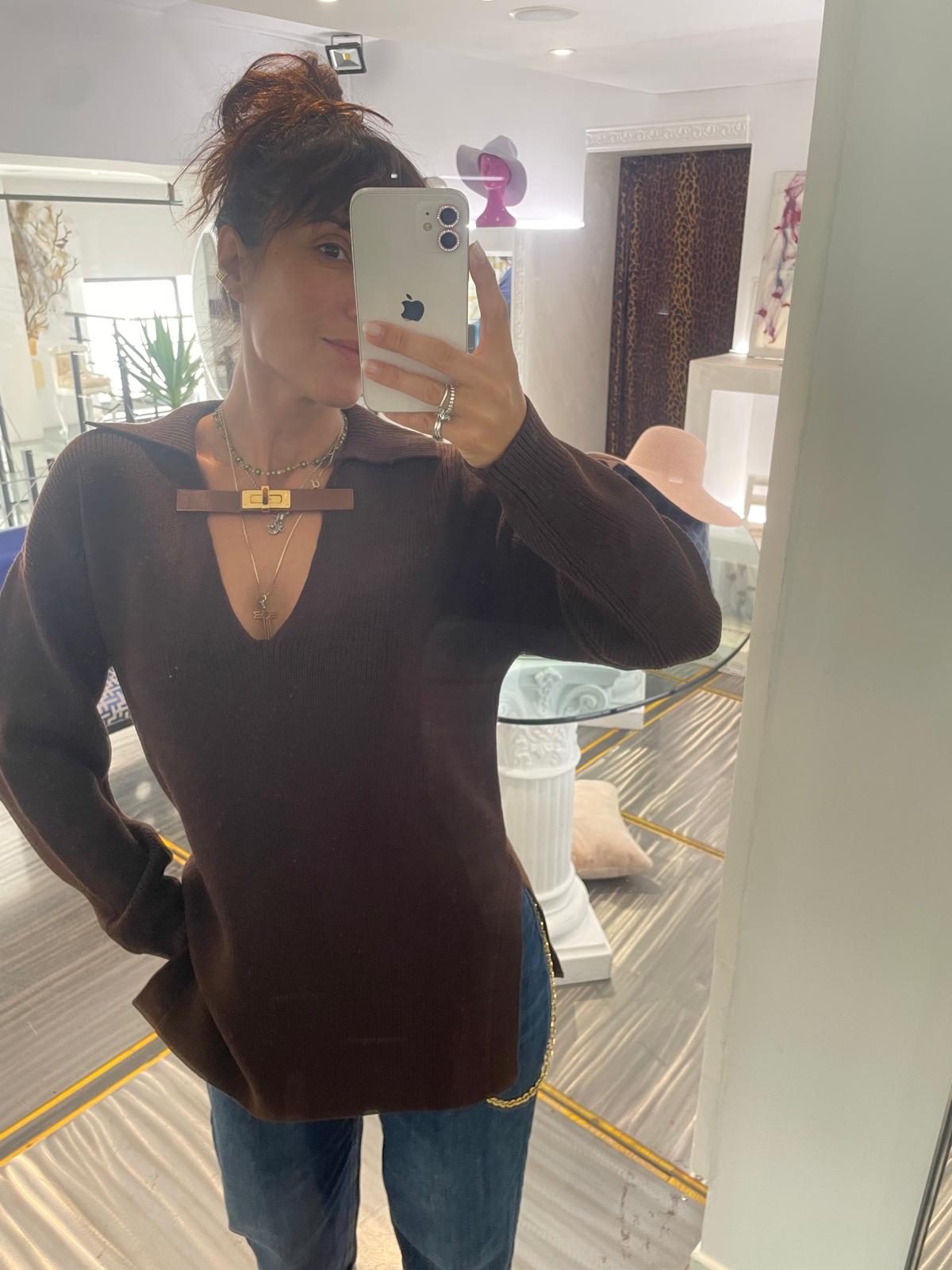 MAGLIA COFFEE CON CINTURINO GIOIELLO ELISABETTA FRANCHI