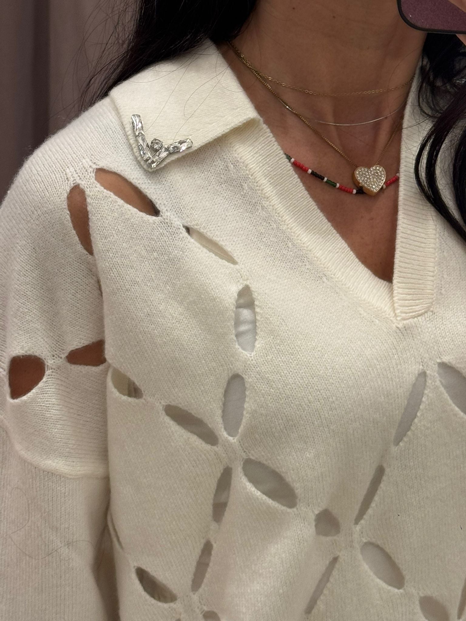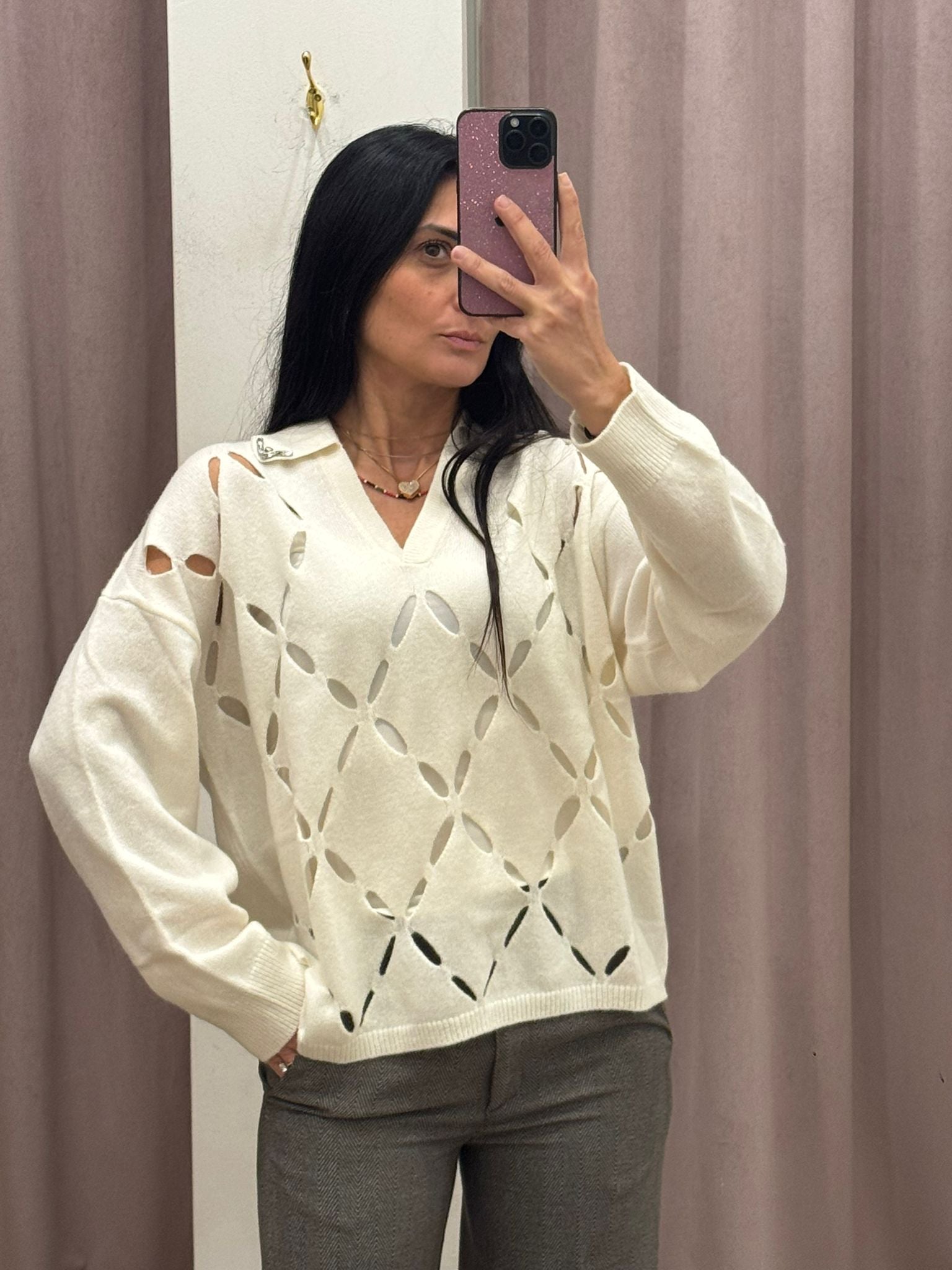MAGLIA PANNA CON RICAMI GIOIELLO LIUJO