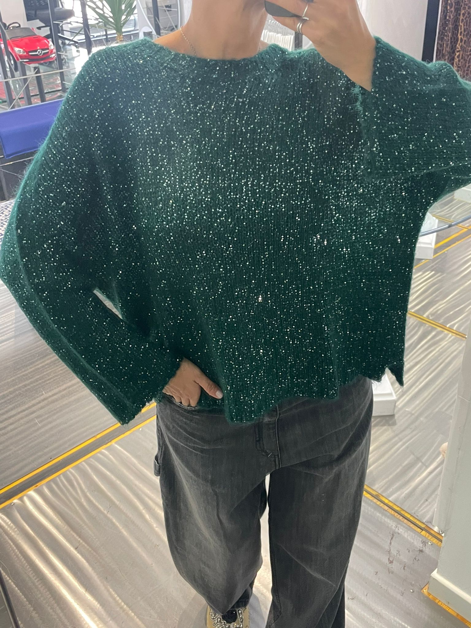 Dettagli: texture a maglia larga e aspetto leggermente irregolare, che conferisce un tocco casual ma con un accento chic grazie alla brillantezza.