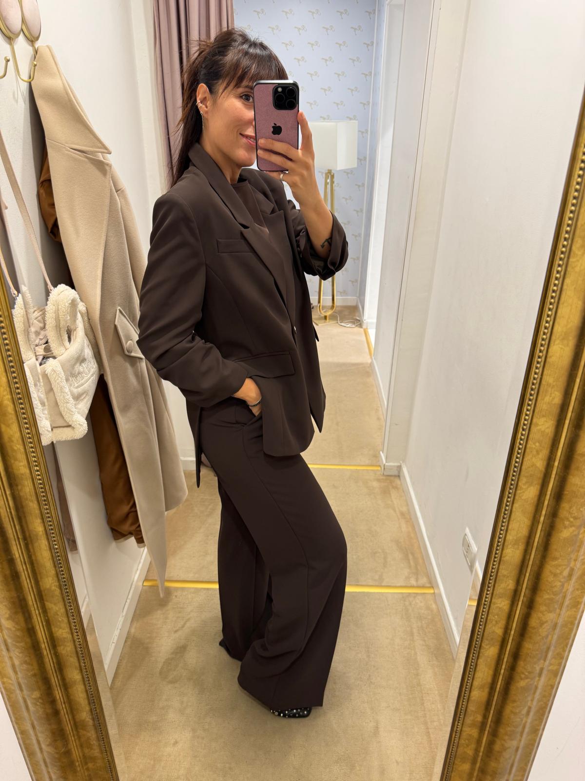 • Gamba lunga e dritta, leggermente ampia (stile palazzo morbido).