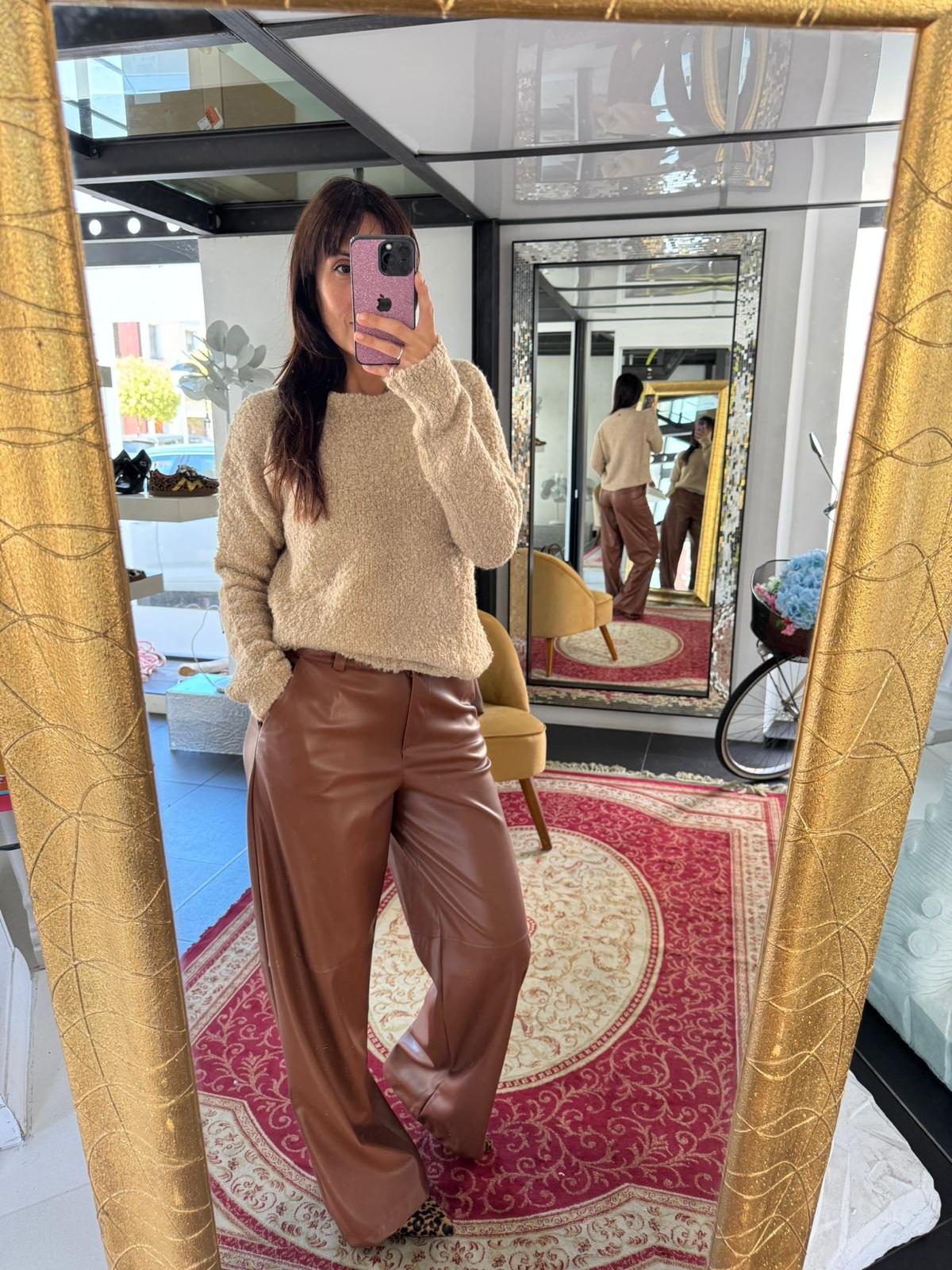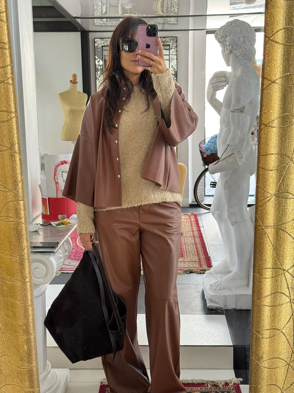 PANTALONE IN ECOPELLE TABACCO DIXIE