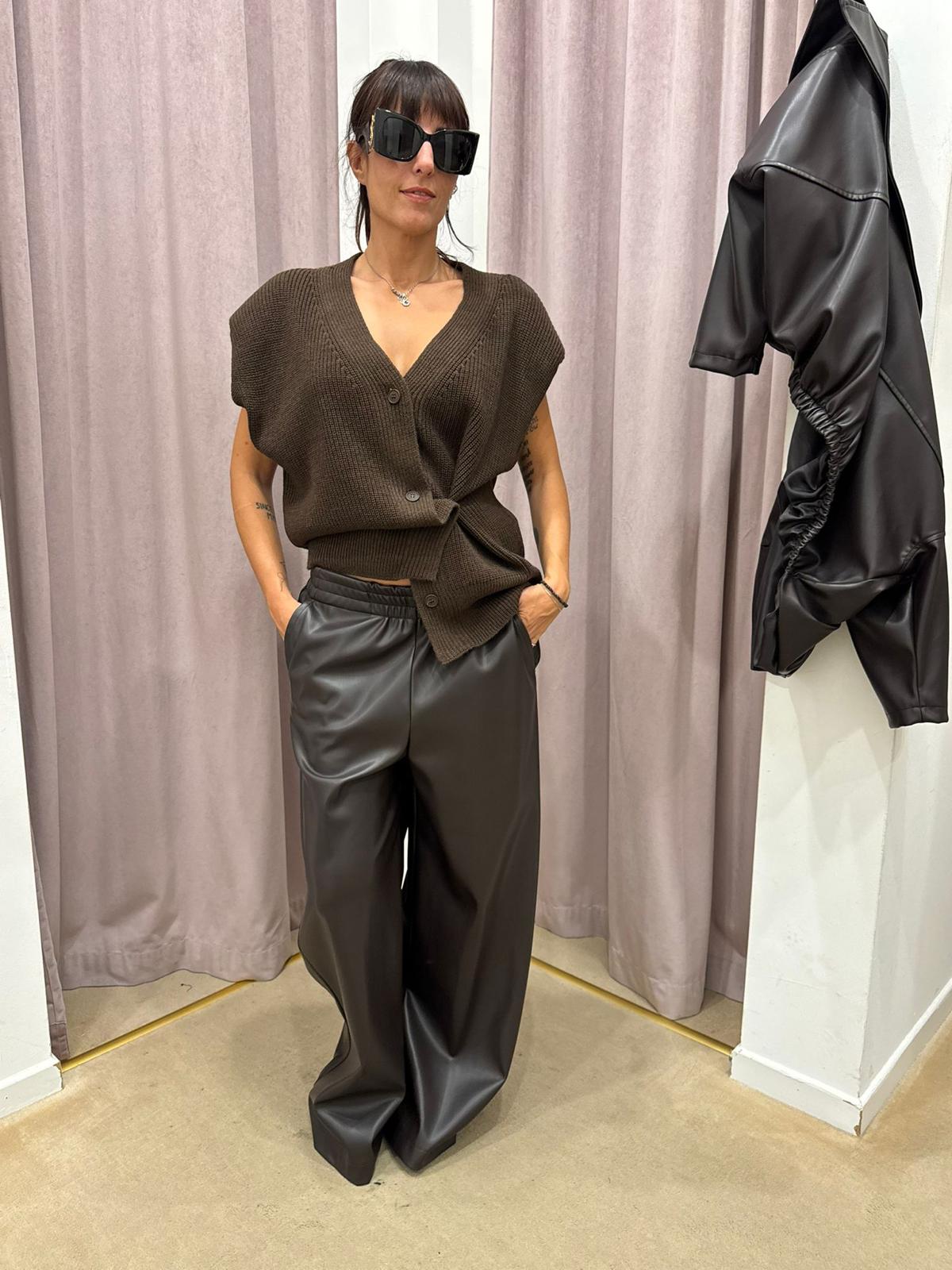 È un capo forte, perfetto per look urban-chic o serate, ma anche sdrammatizzabile con sneakers e maglioni morbidi per il giorno.