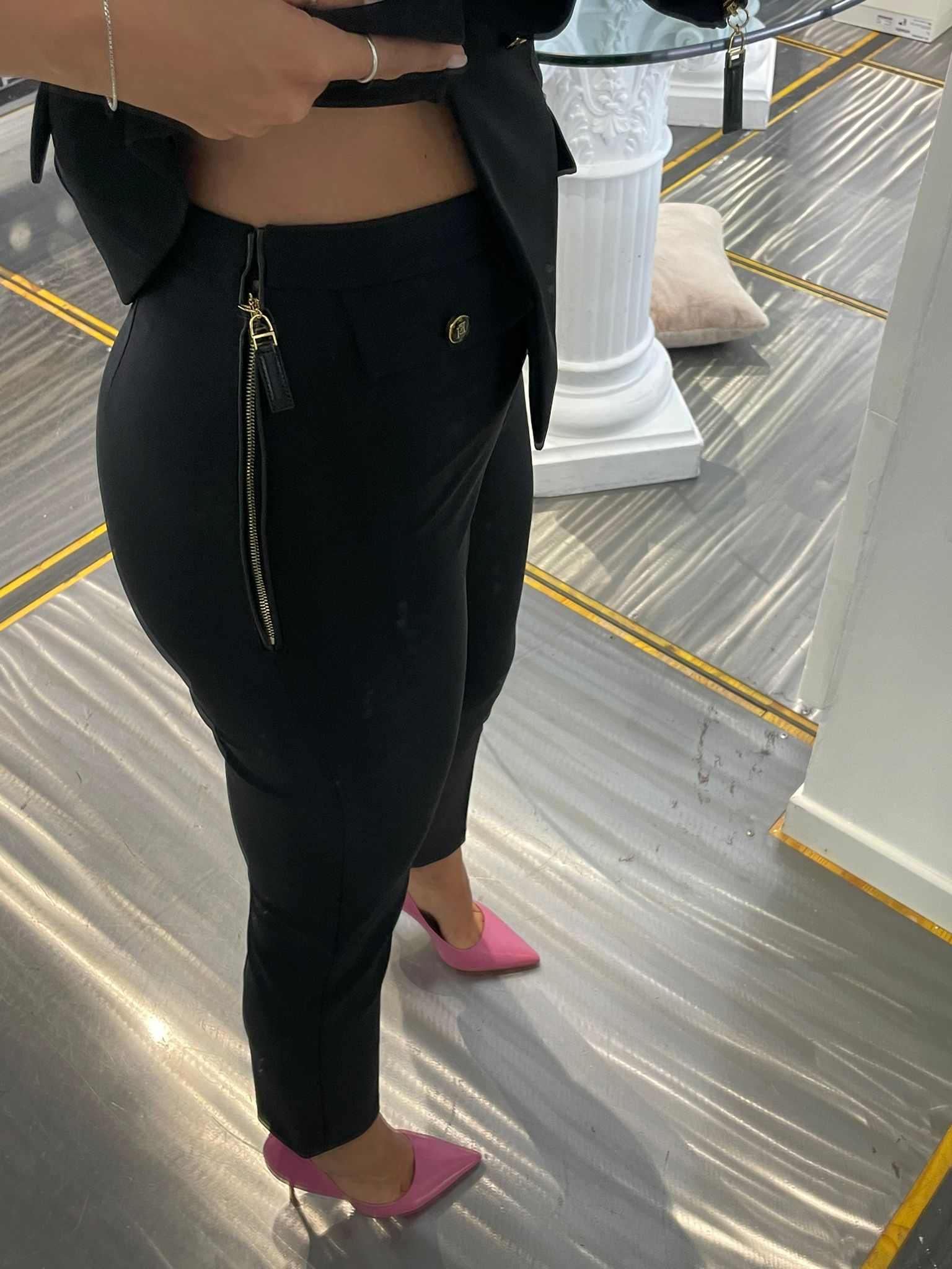 Pantaloni in doppio crêpe dalla vestibilità slim con lunghezza alla caviglia. Con patte applicate sul davanti e impreziosite da bottoni smaltati con logo, hanno chiusura con zip laterale e tirazip. Parte della collezione Essential, per costruire il guardaroba perfetto.