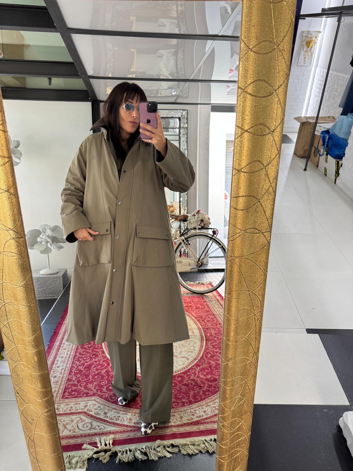 Dotato di bottoni a pressione e grandi tasche, questo parka offre una protezione ideale contro vento e pioggia, mantenendo uno stile sobrio e raffinato.