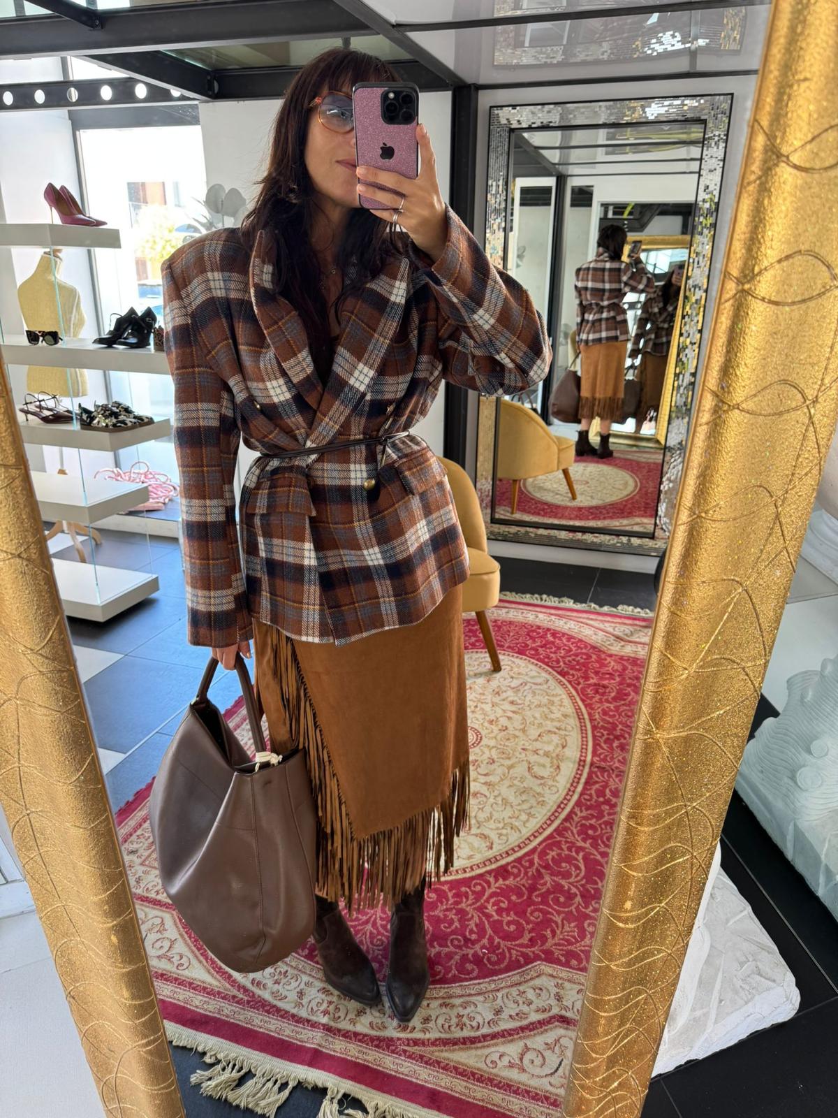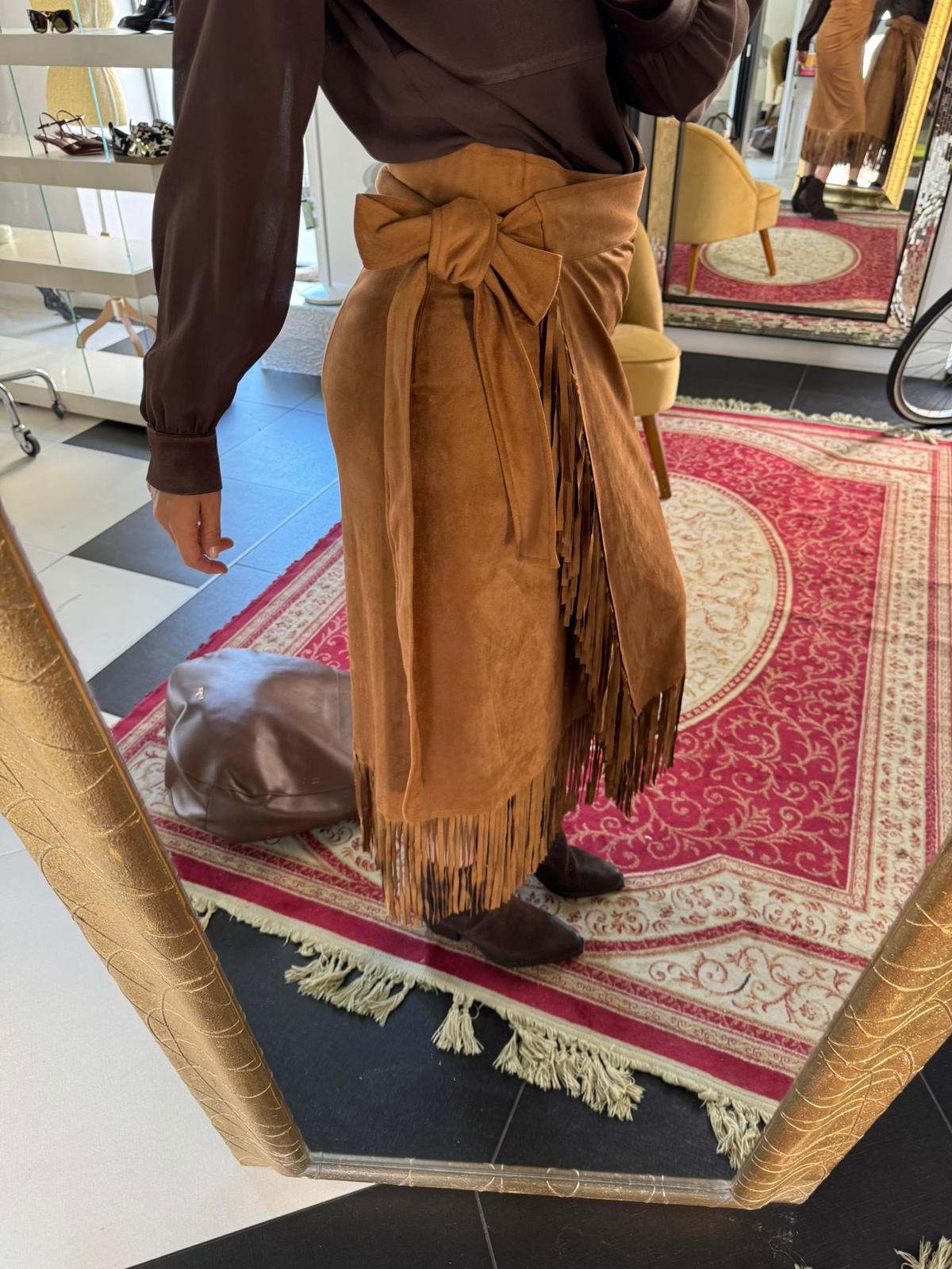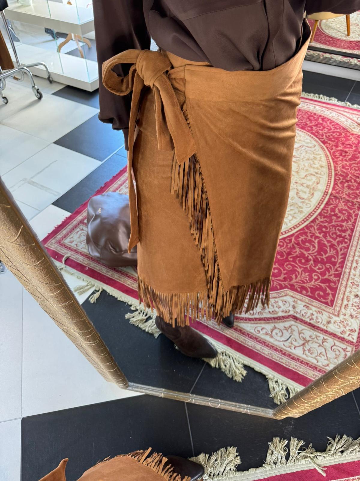 • Dettagli: frange lunghe sul bordo inferiore che donano movimento e richiamano uno stile western.