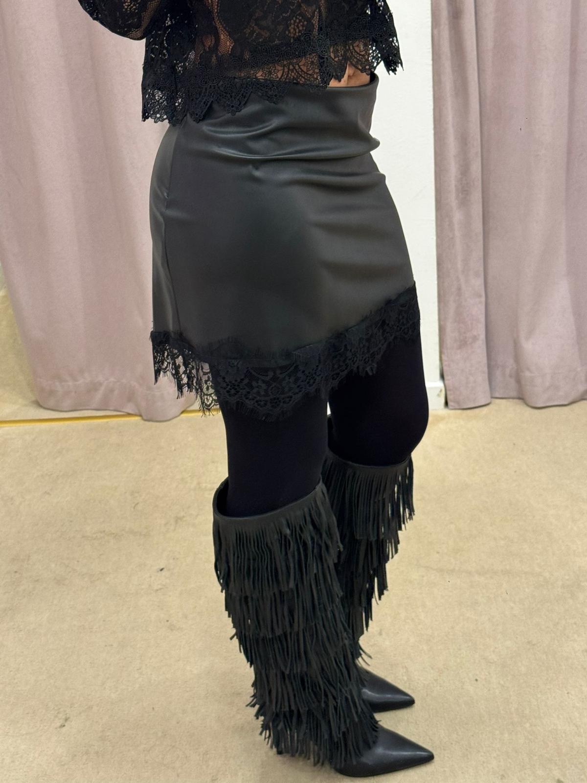 GONNA IN ECOPELLE CON BORDO IN PIZZO TENSIONE IN