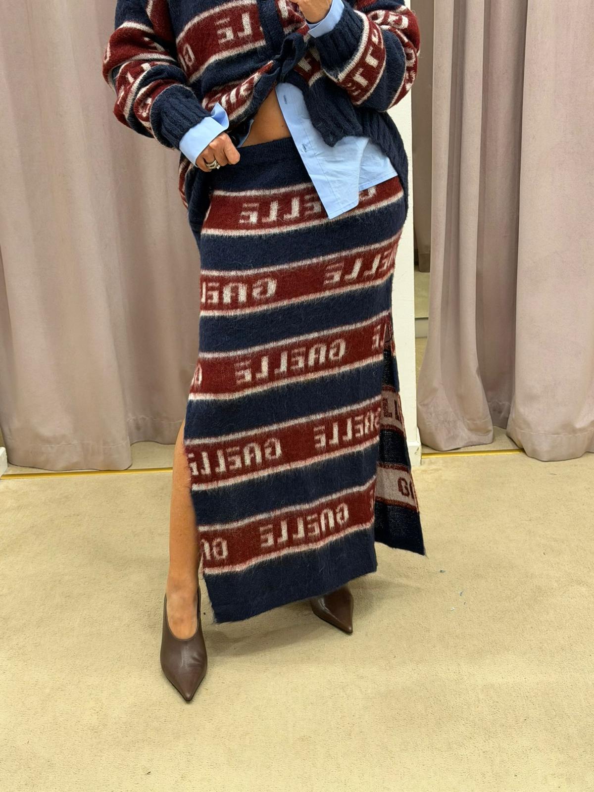 • Dettagli: logo a righe e spacco laterale