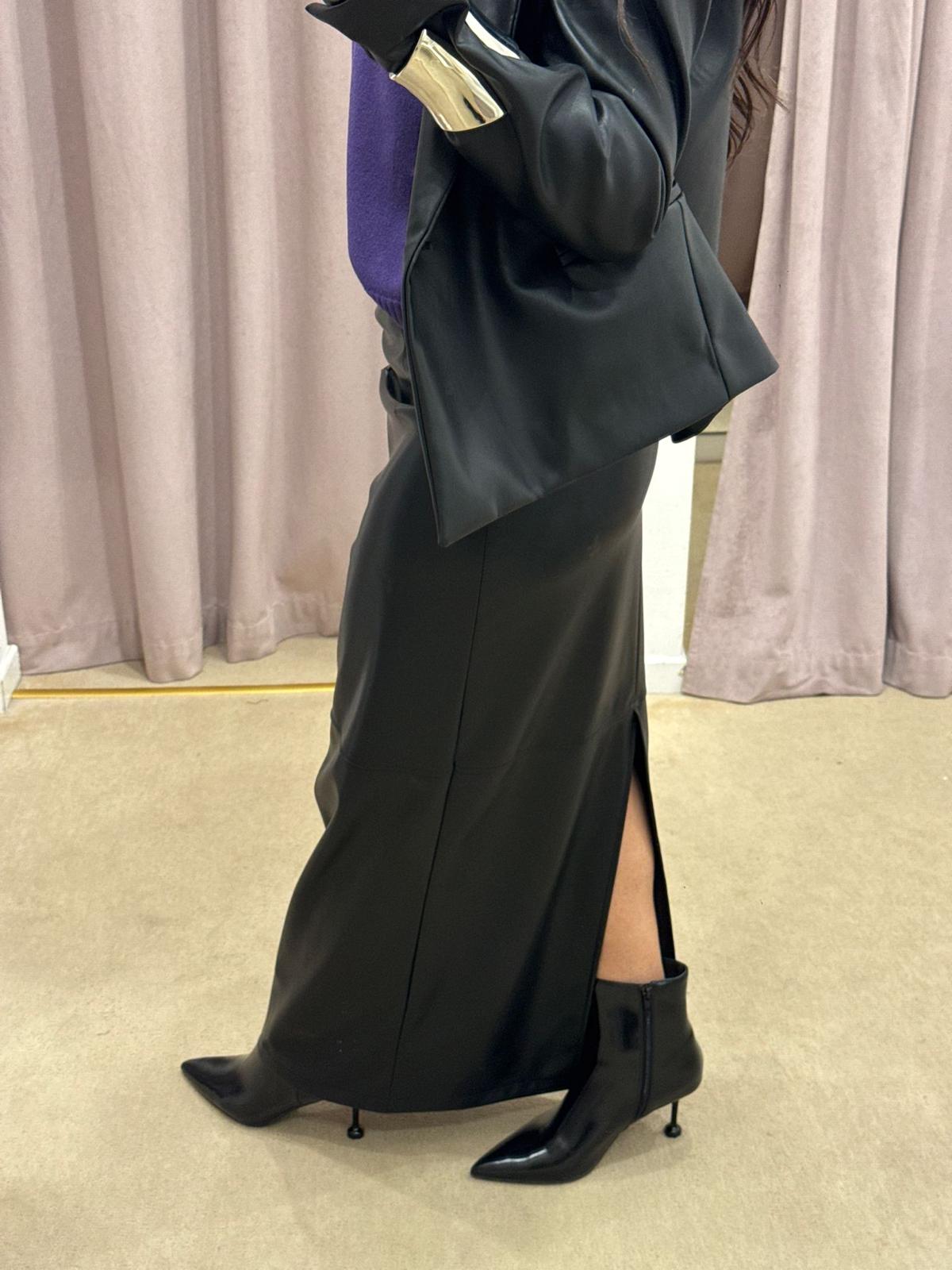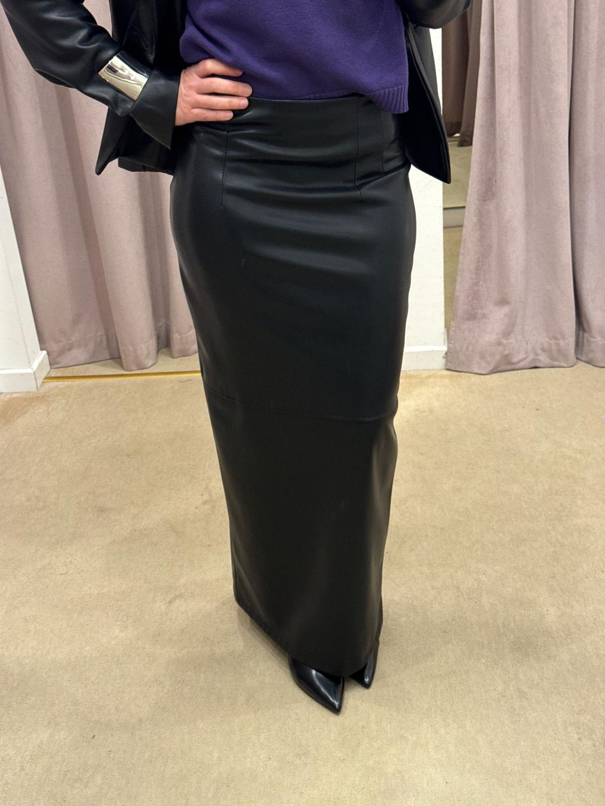 GONNA LUNGA IN ECOPELLE NERA TENSIONE IN