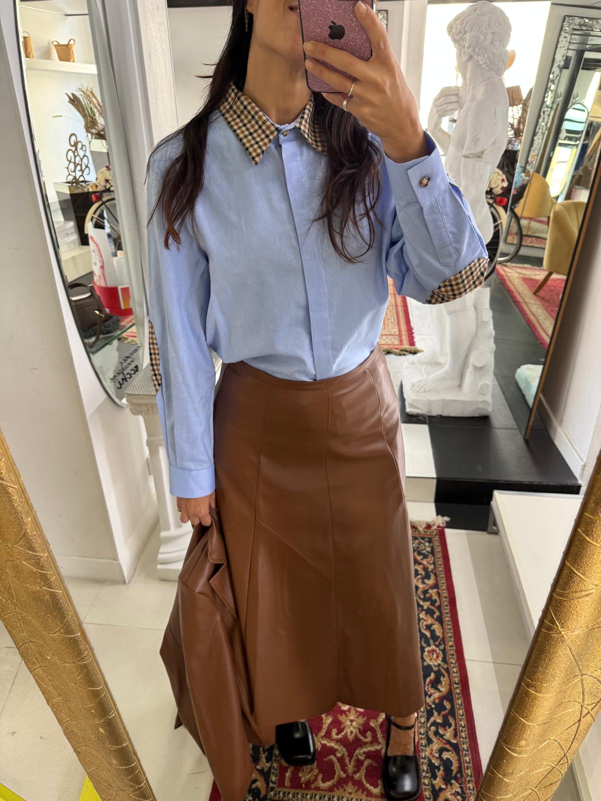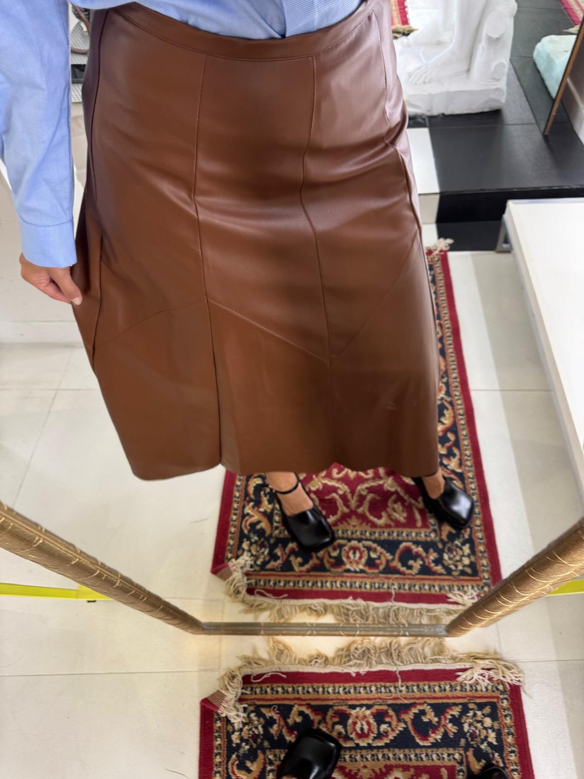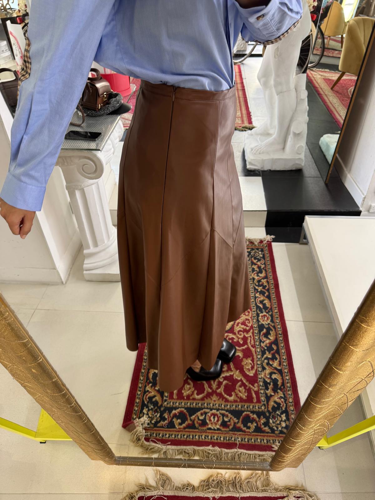 Gonna longuette eco-pelle tabacco.