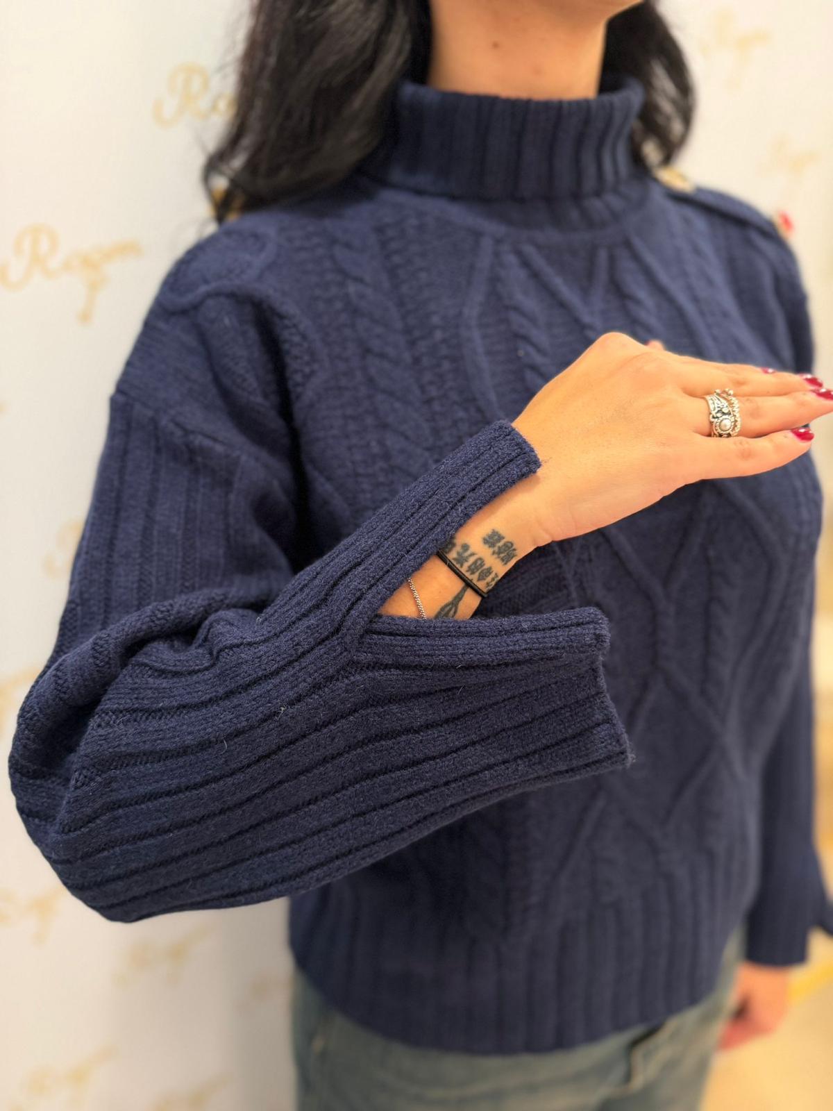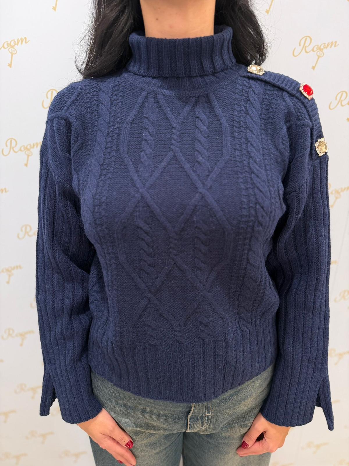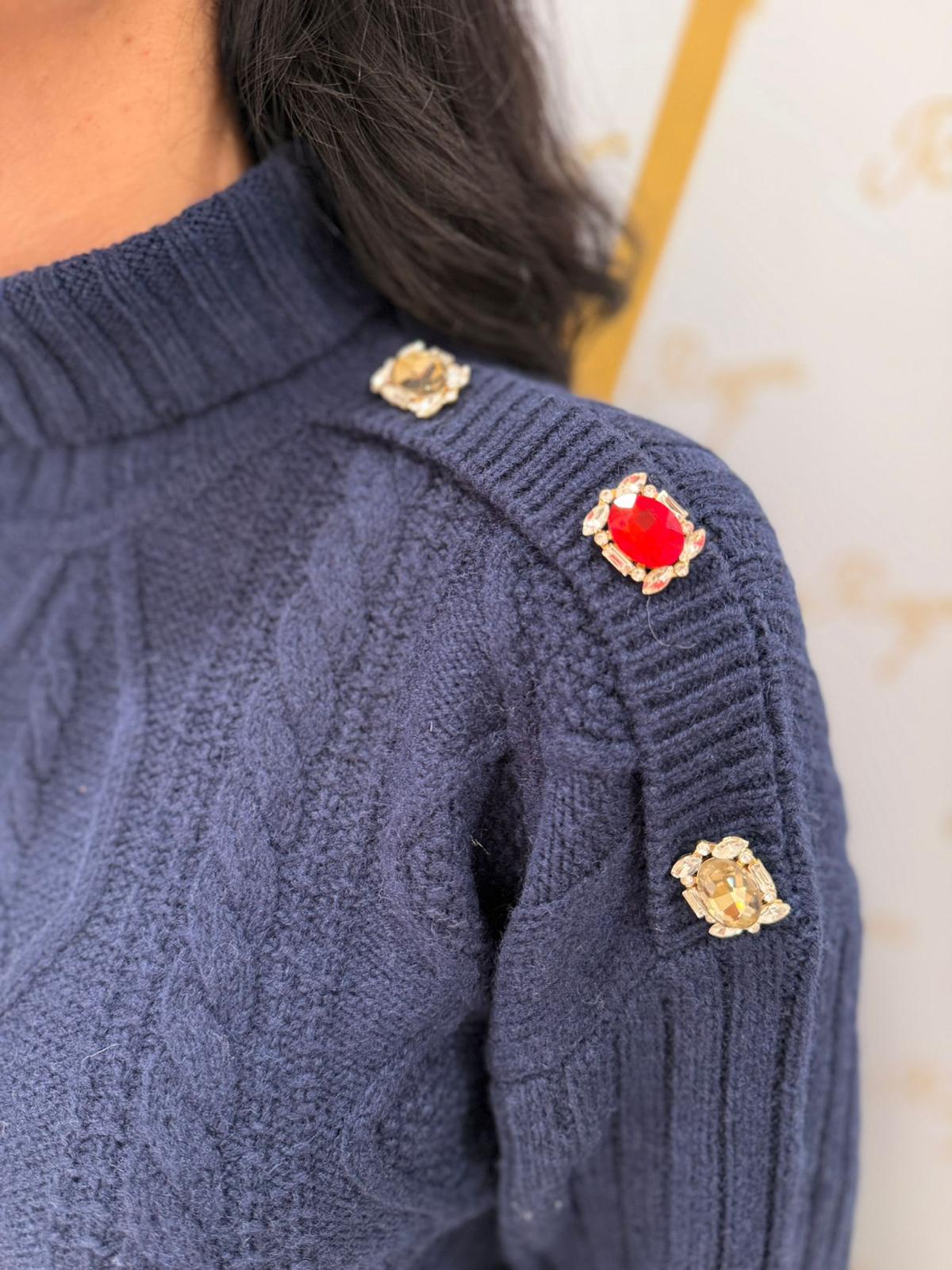MAGLIA BLU CON BOTTONI GIOIELLO LIUJO