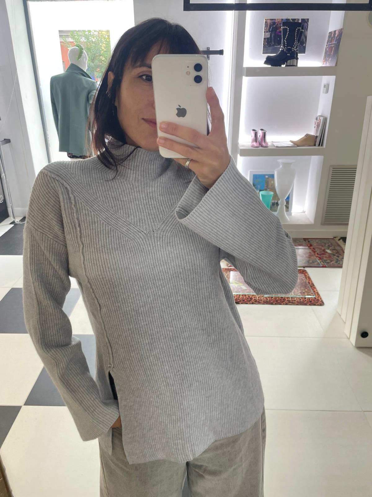 MAGLIA GRIGIO PERLA CON SPACCO HAVEONE