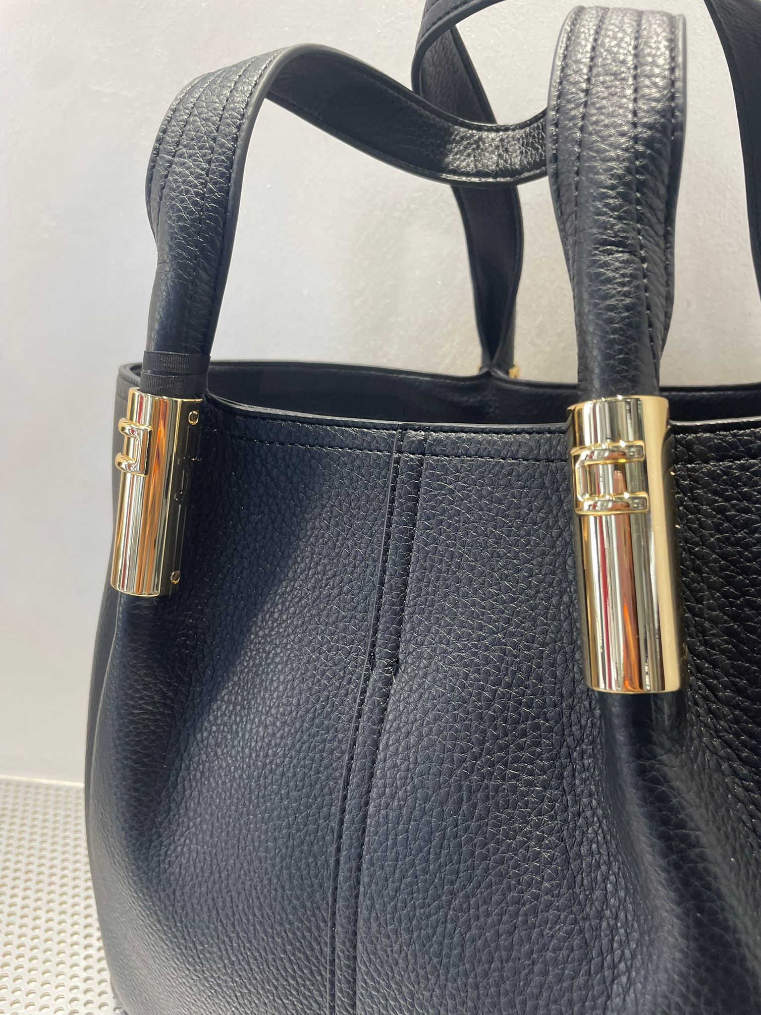 - Dettagli in metallo dorato con logo
