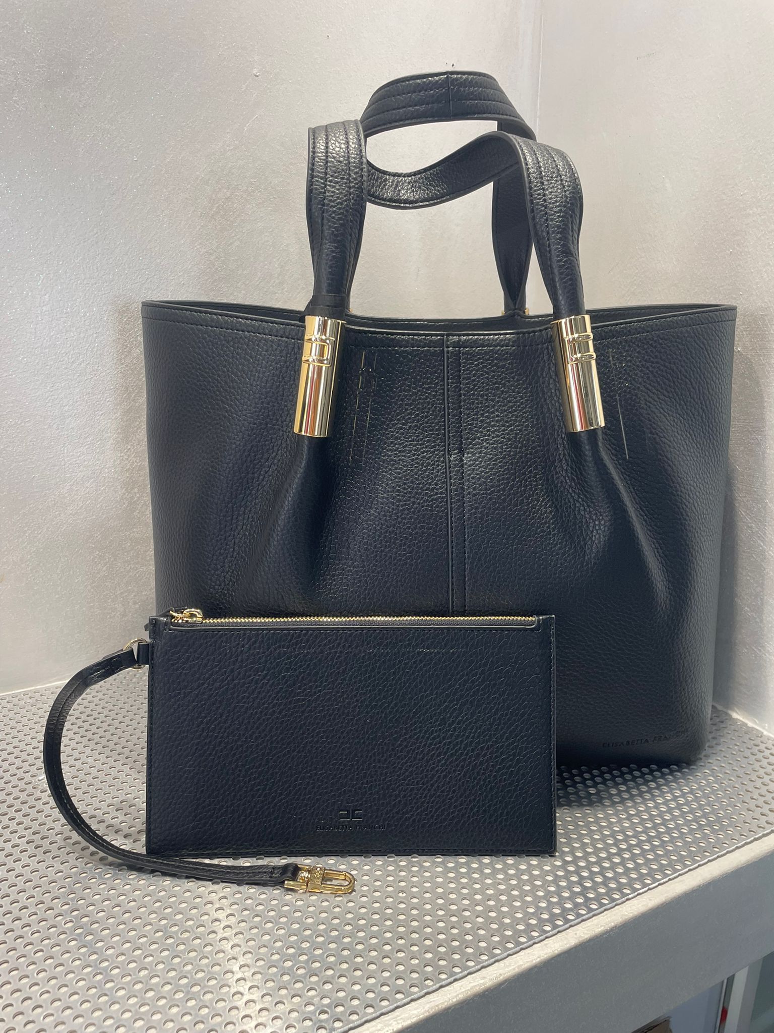 TOTE NERO GRANDE CON DETTAGLI LOGO ELISABETTA FRANCHI