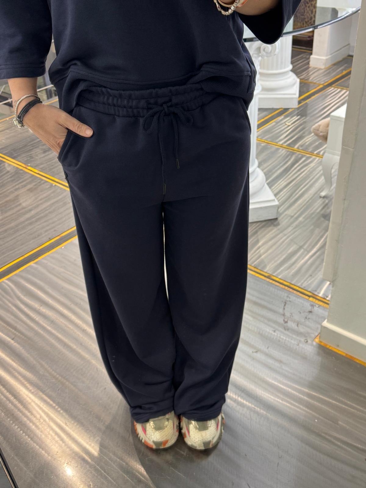 PANTALONE BLU TUTA A PALAZZO PLEASE