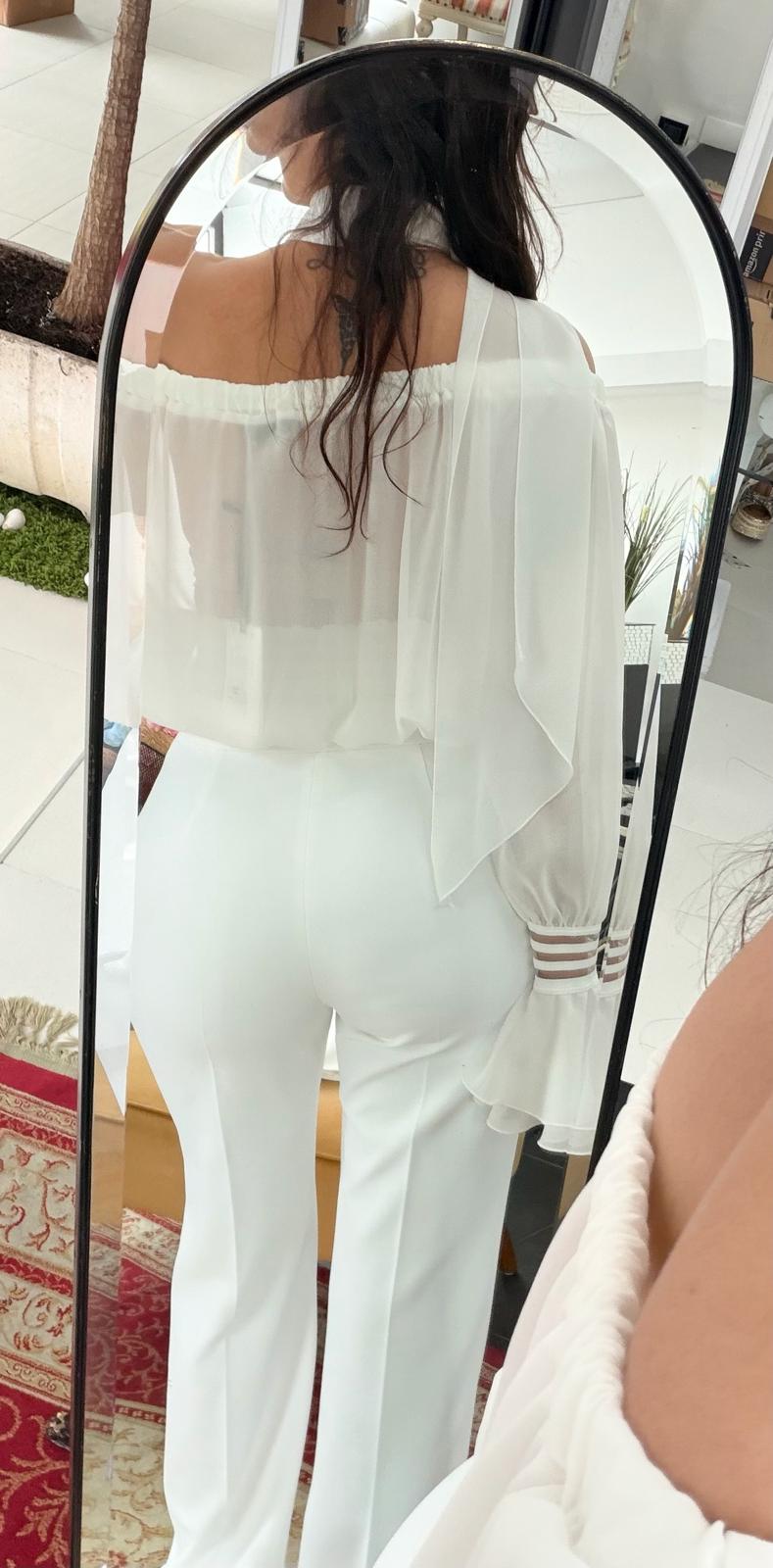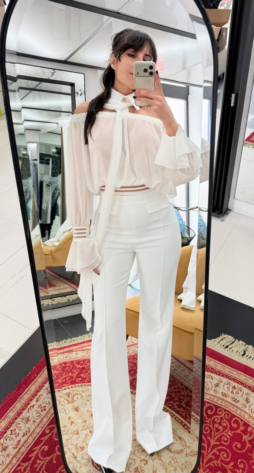 PANTALONE AVORIO IN DOPPIO CREPE CON LOGO RICAMATO ELISABETTA FRANCHI