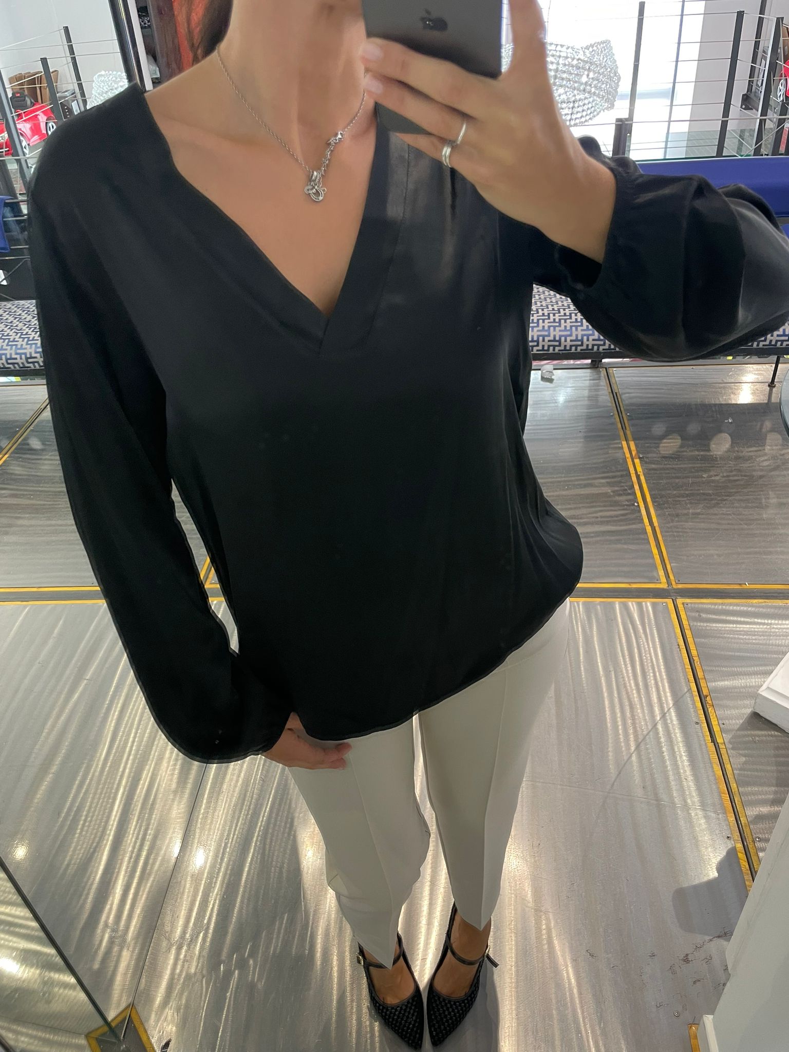 MARYLEY SCHWARZE V-AUSSCHNITT-BLUSE