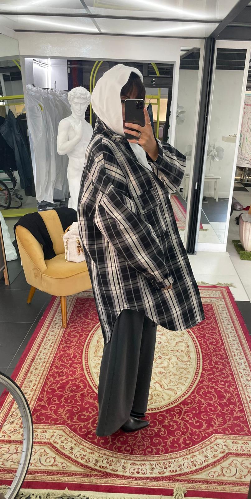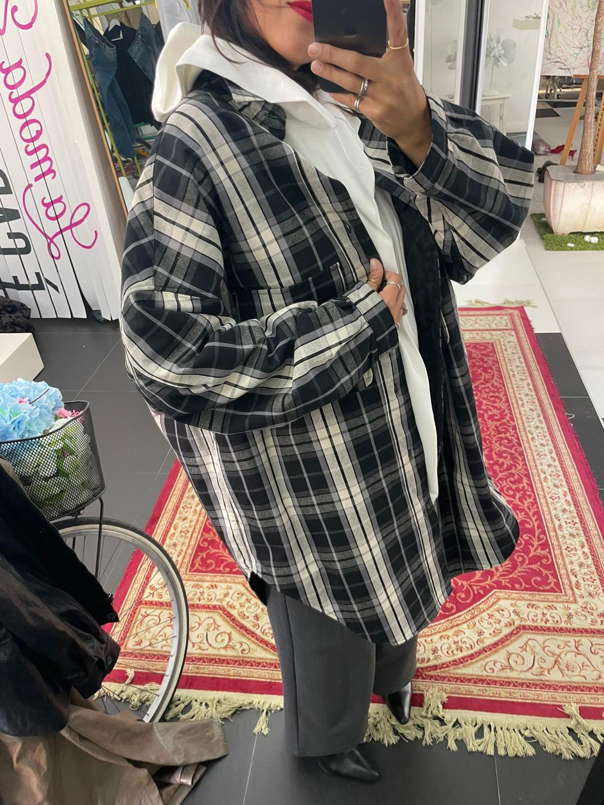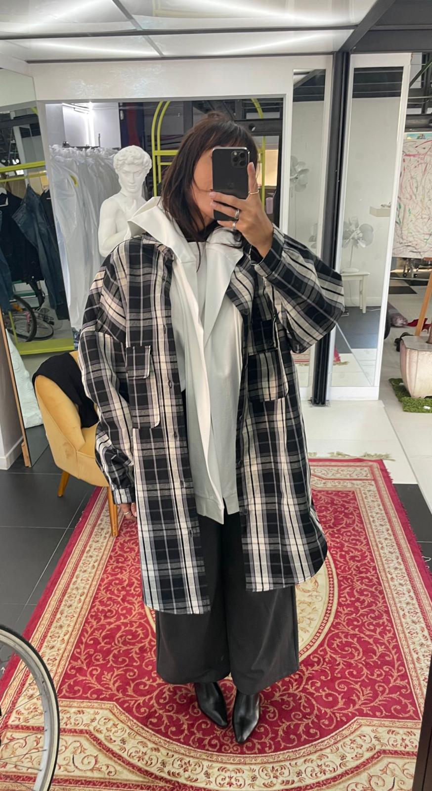 Die Jacke hat einen Oversized-Schnitt und ein Design, das von karierten Hemden inspiriert ist.