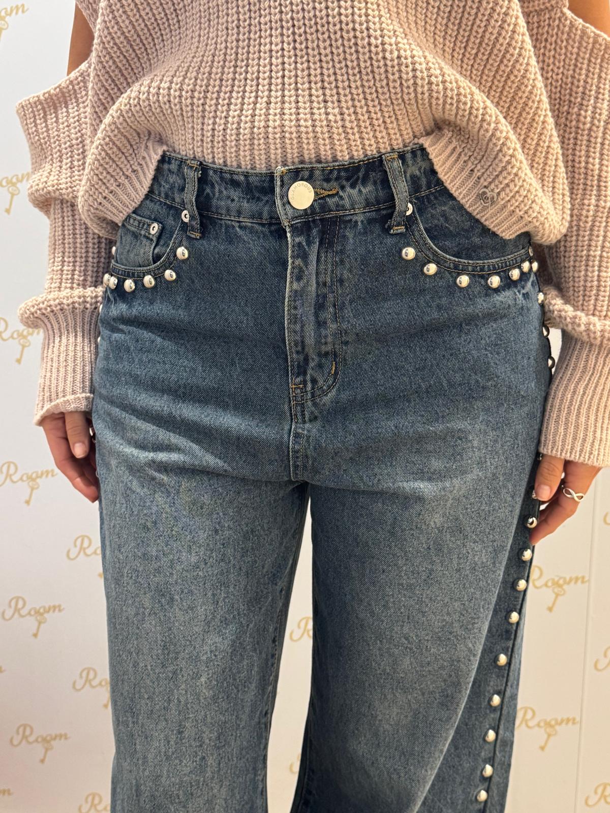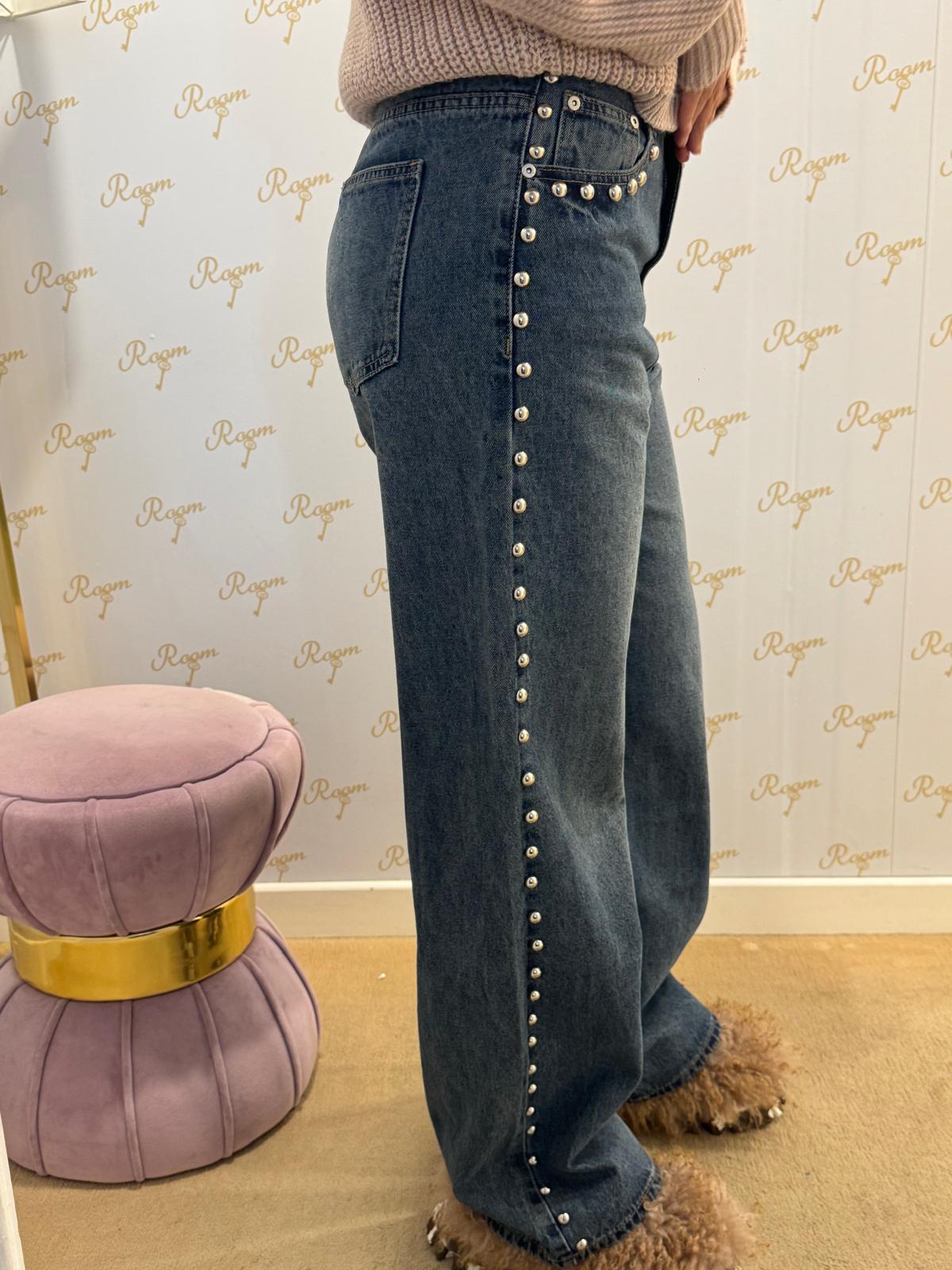 Glamouröse Palazzo-Jeans mit seitlichen Nieten