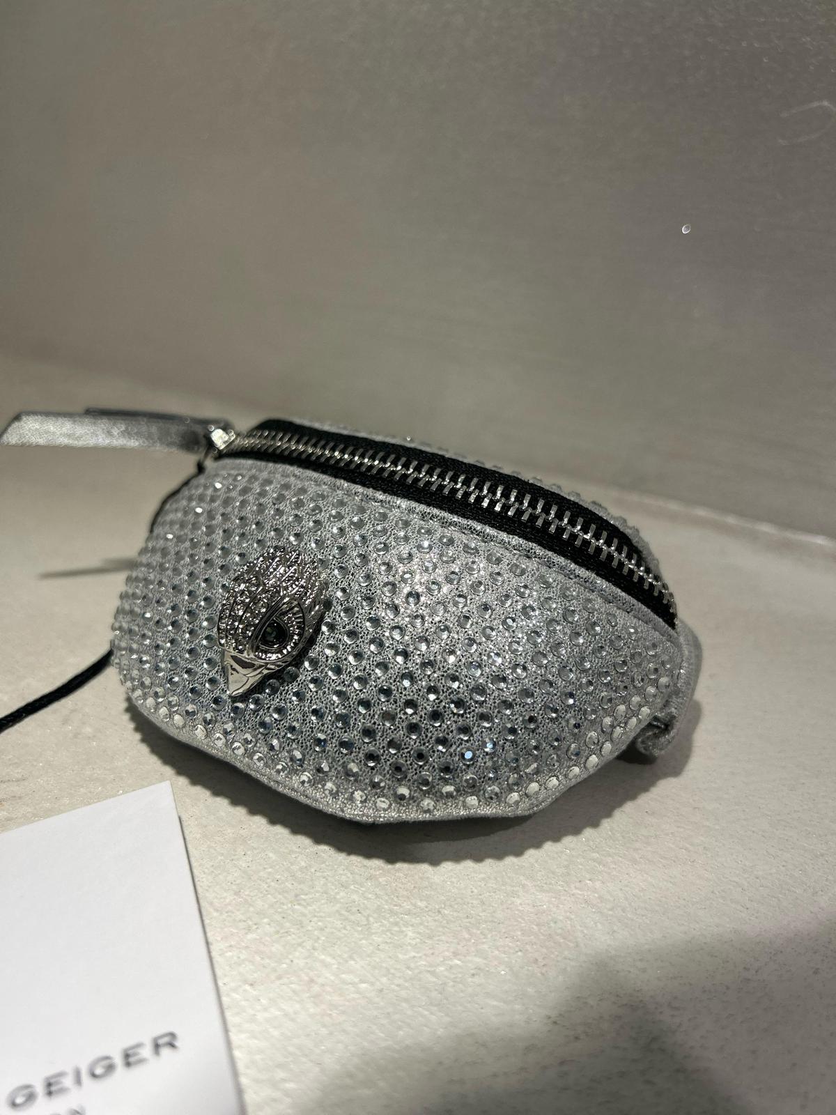 Kleine laminierte Geldbörse mit Strasssteinen und silbernem Adler.
