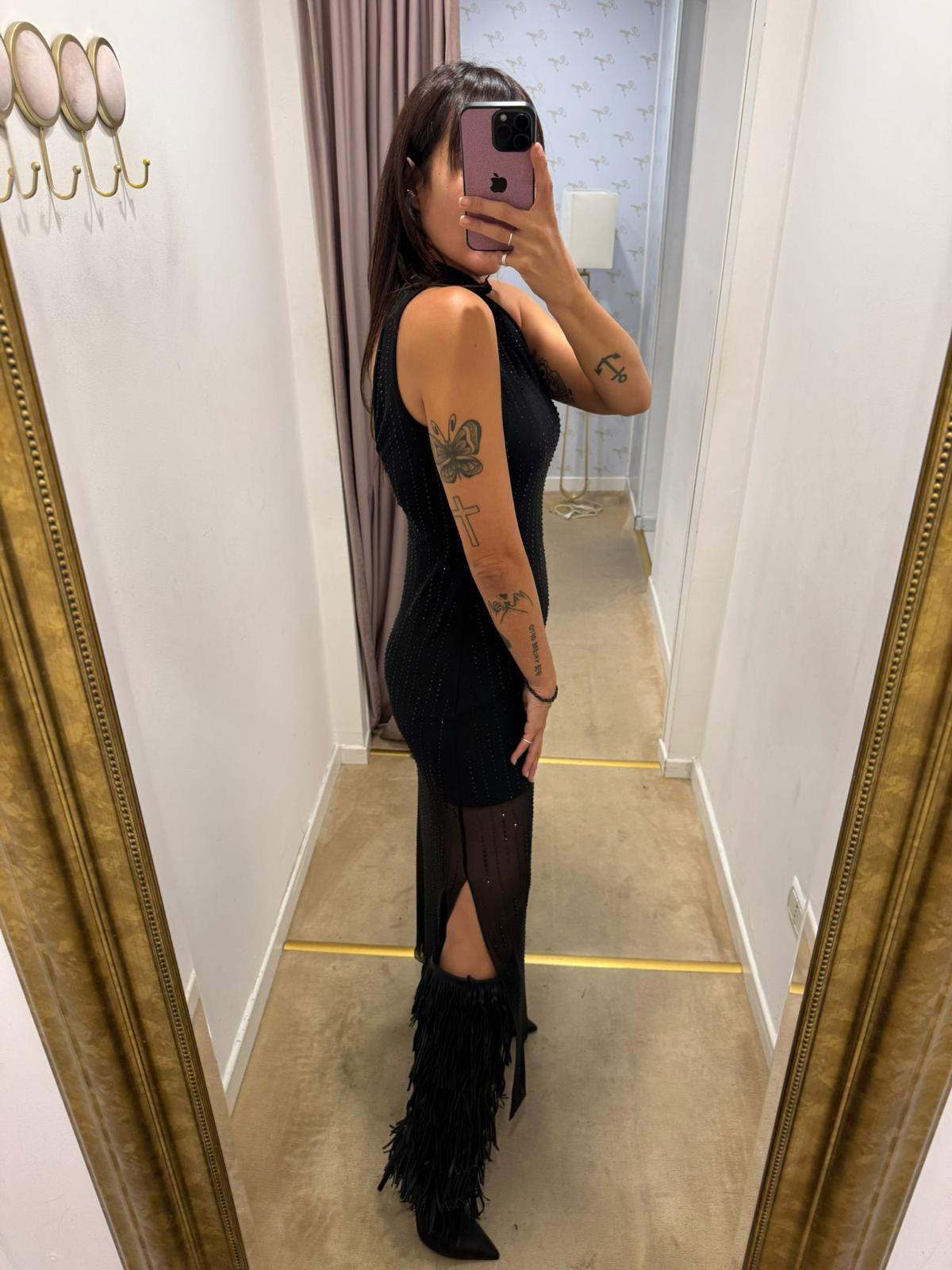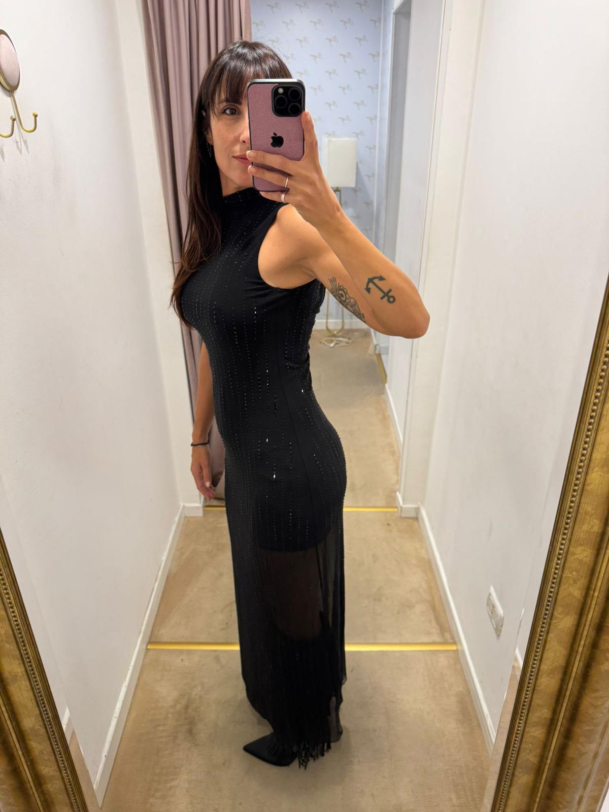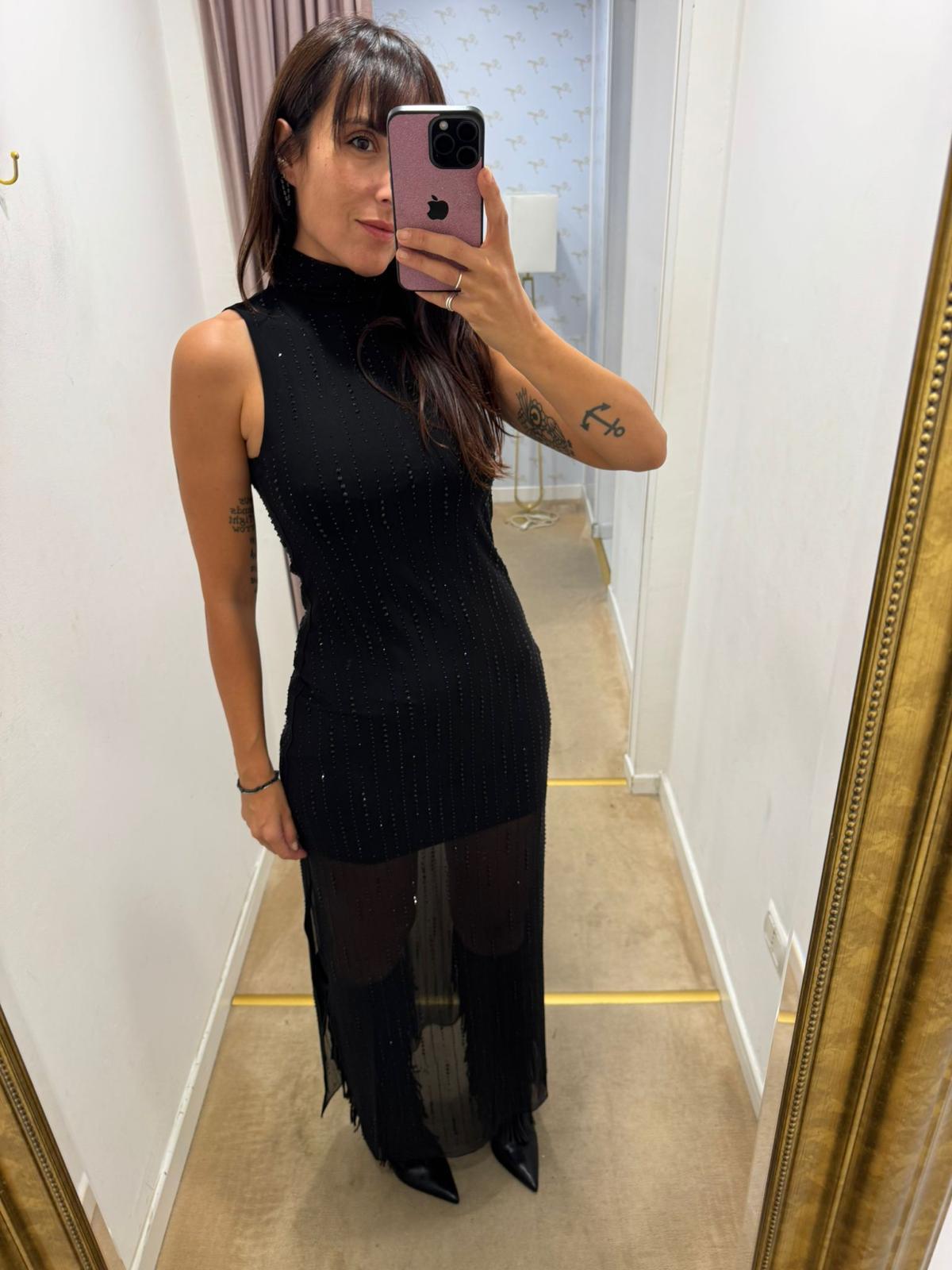 LIUJO SCHWARZES TÜLL- UND STASSKLEID