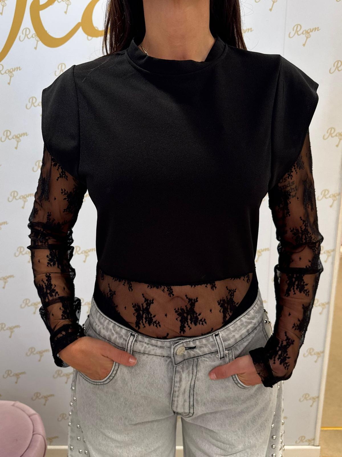 • Material: Oberteil aus glattem Funktionsgewebe, Ärmel und unterer Bund aus elastischer Spitze