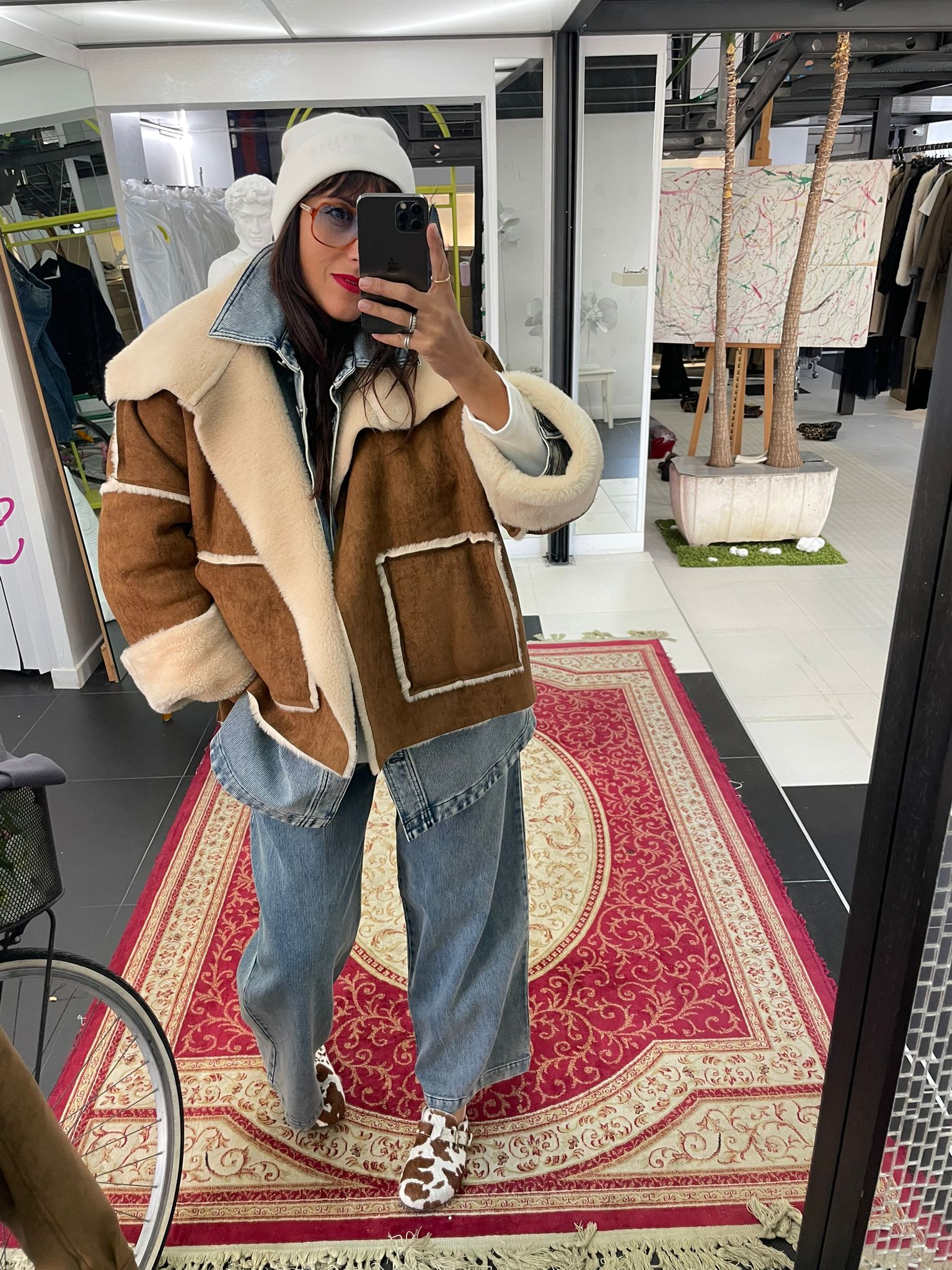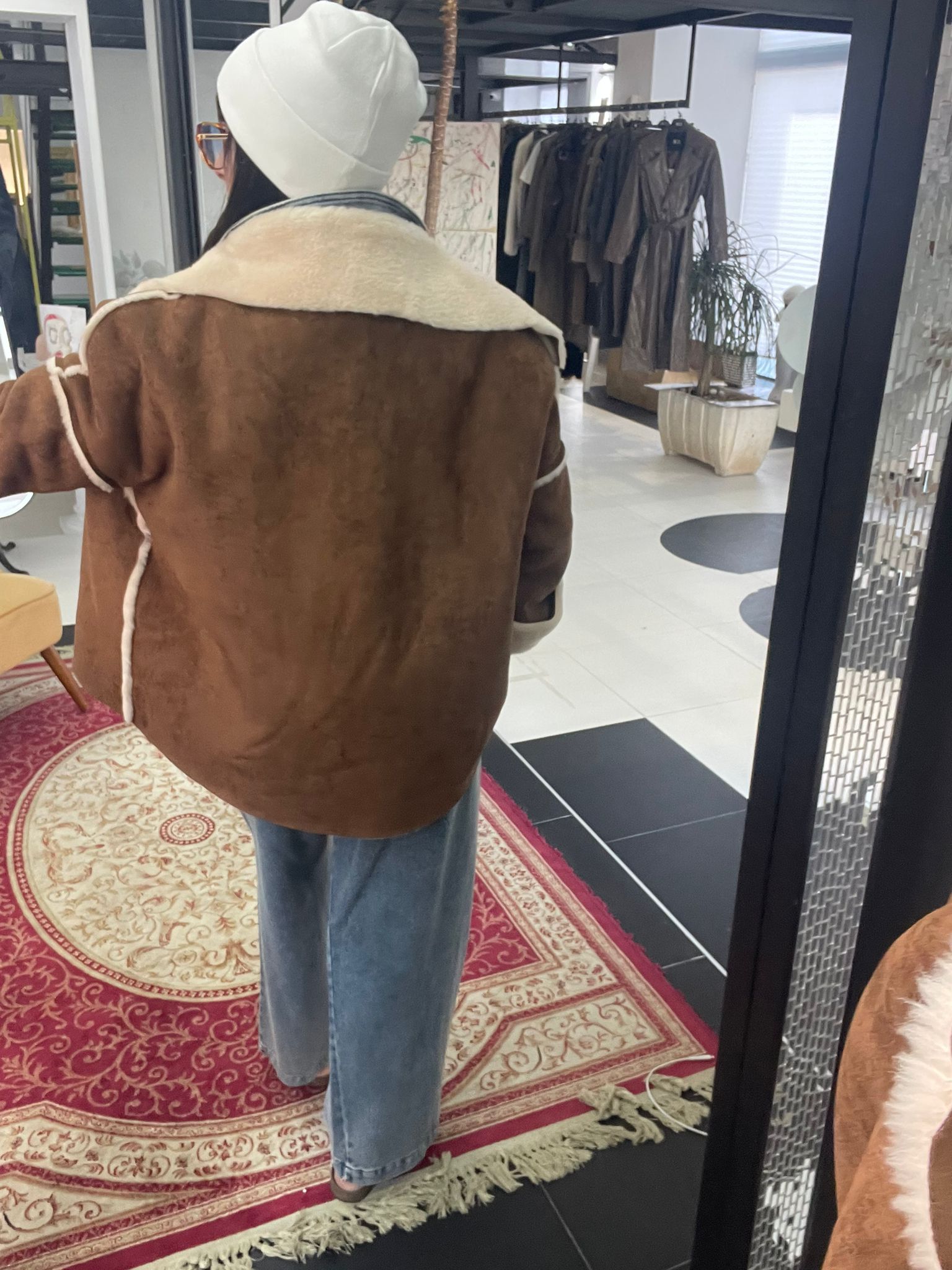 Kurzer Mantel mit Vordertaschen und Fleecebesatz.