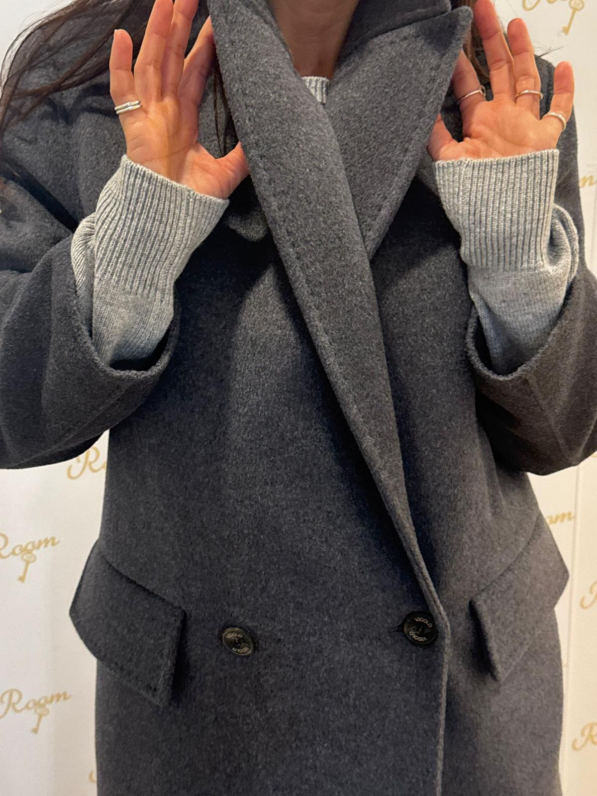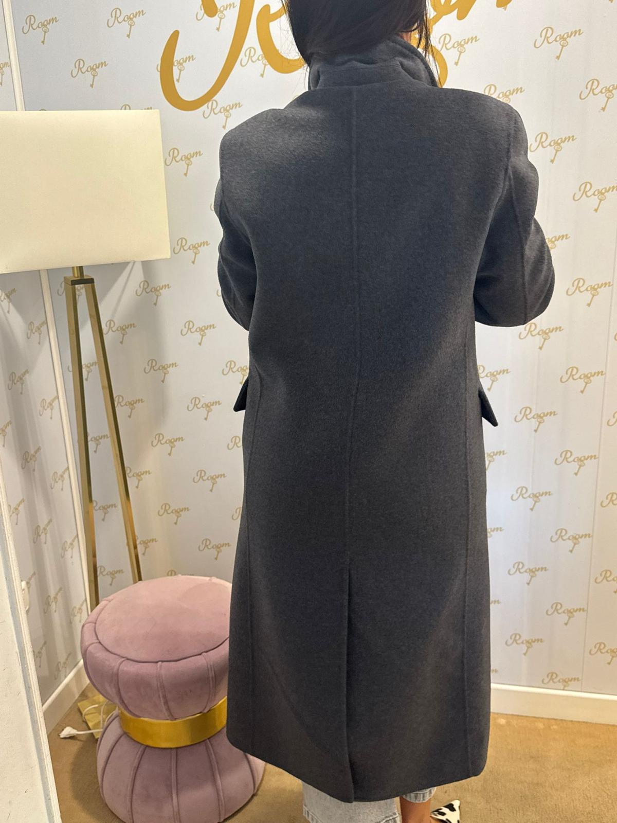 Dieser Mantel aus warmem, strukturiertem Wollstoff zeichnet sich durch eine klare, gerade Passform mit doppelter Knopfleiste und breitem Revers aus.