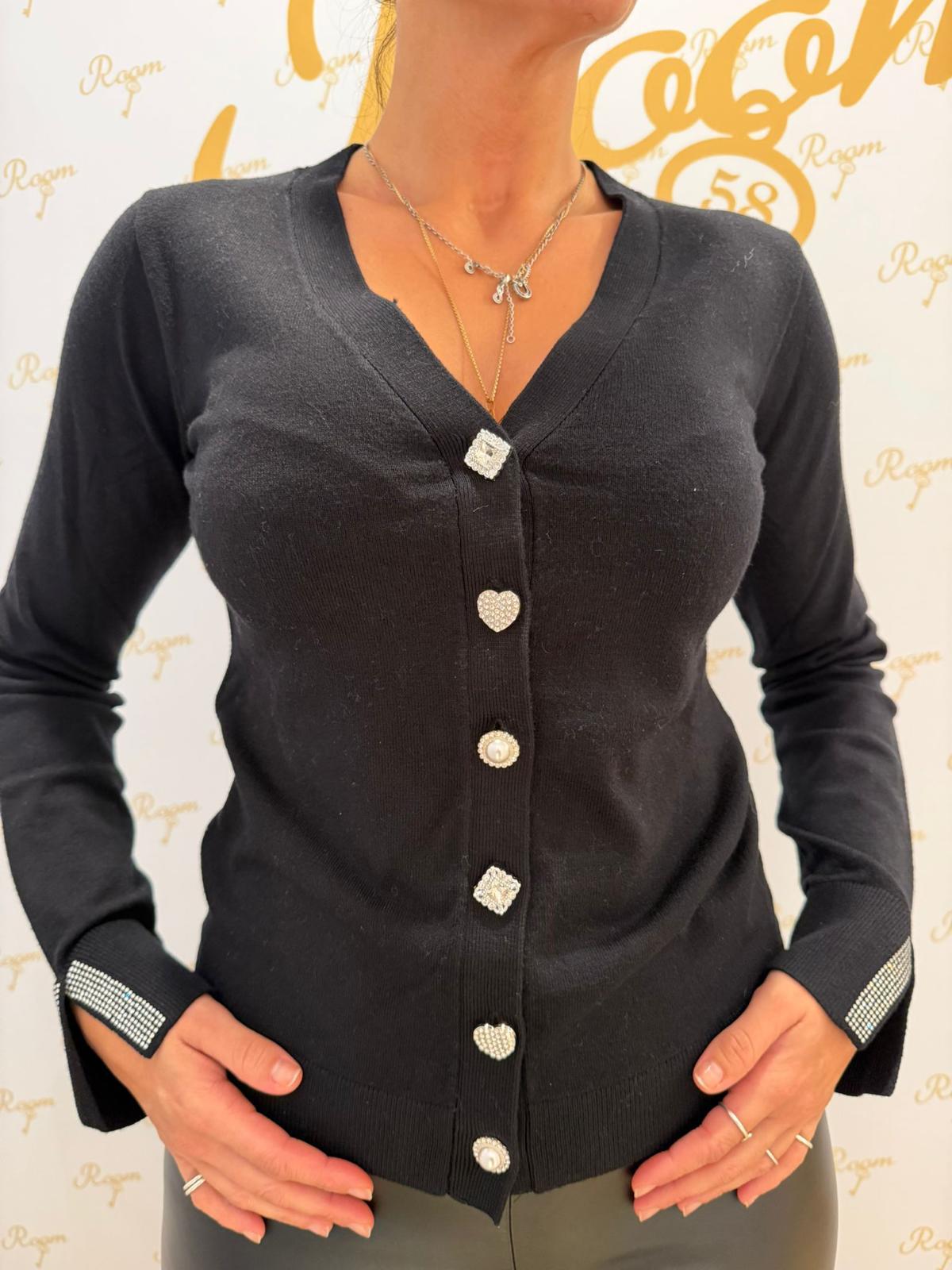 SCHWARZE STRICKJACKE MIT JUWELENKNÖPFEN
