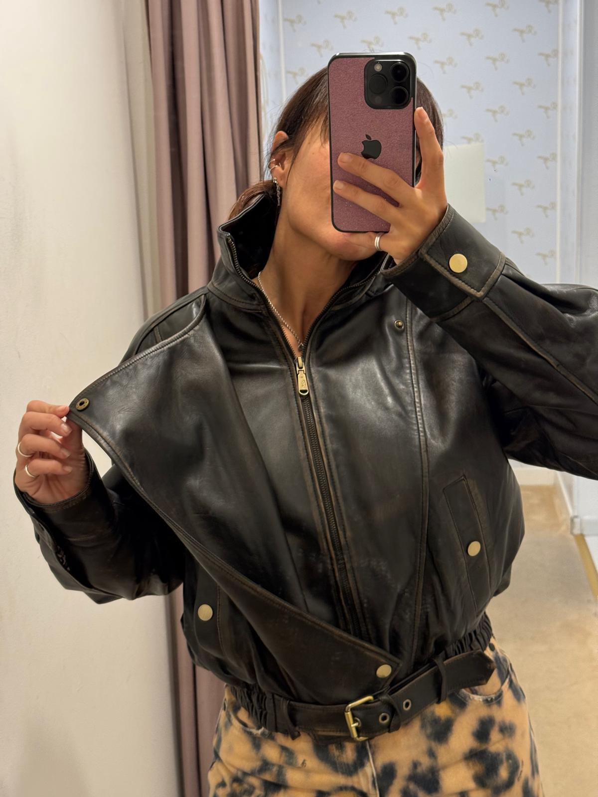 BLUGIRL SCHOKOLADENLEDERJACKE