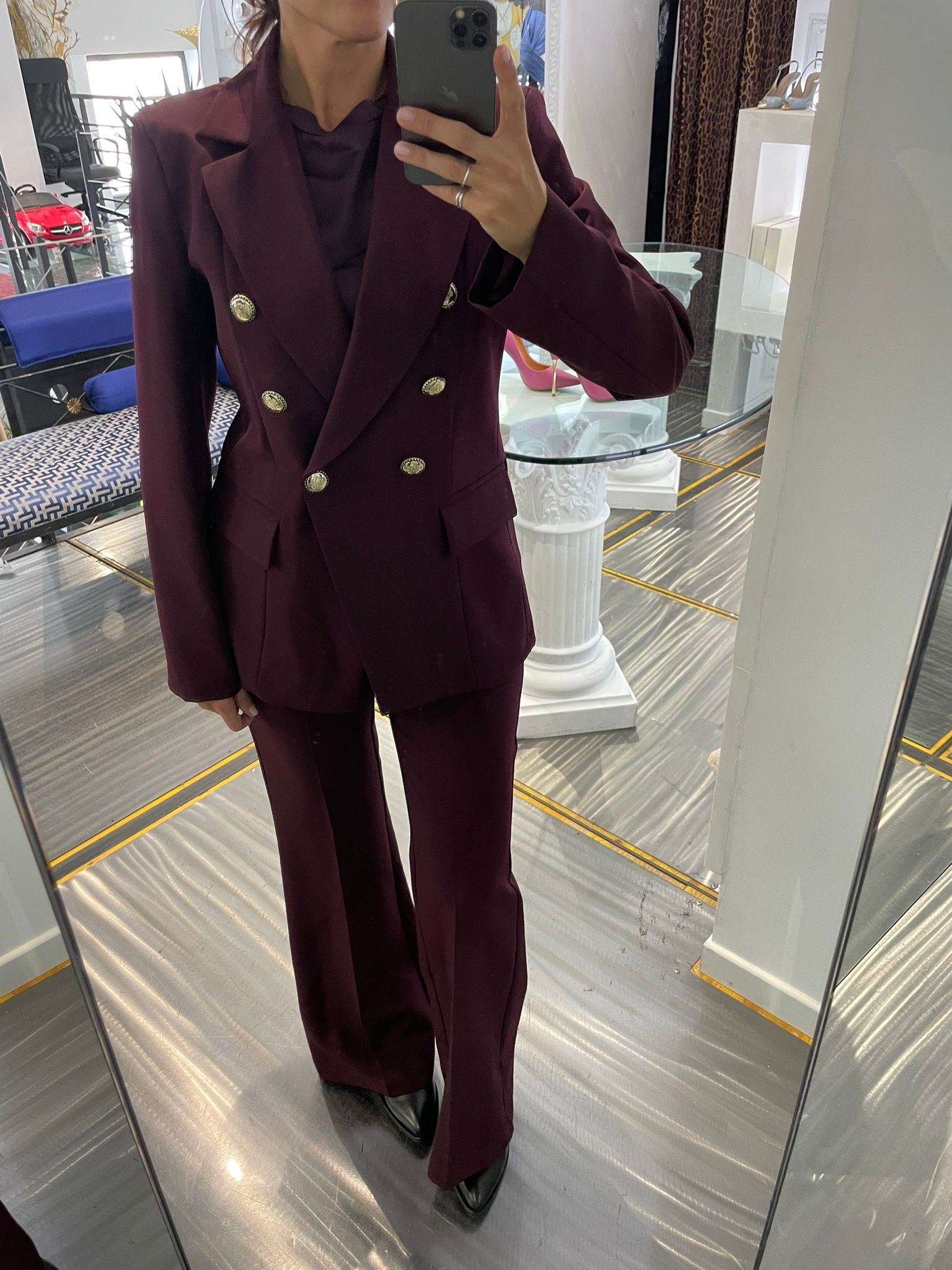 • Zweireihiges Modell mit sechs dekorativen silberfarbenen Metallknöpfen.