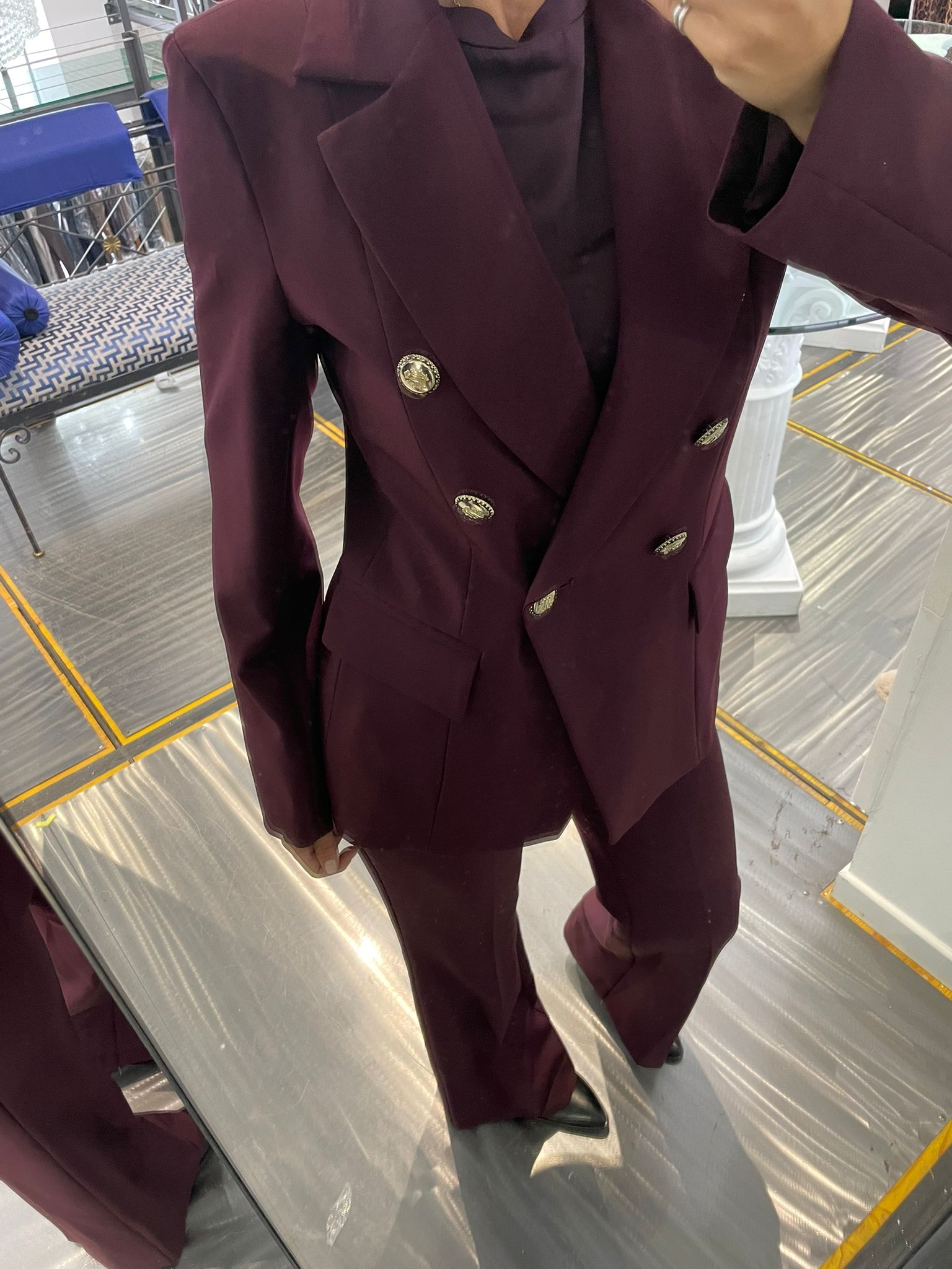 Der Anzug, den Sie tragen, ist ein eleganter Hosenanzug.