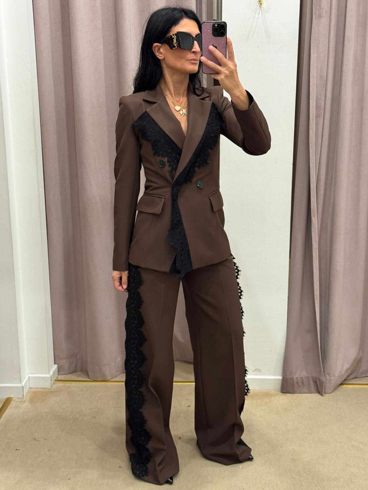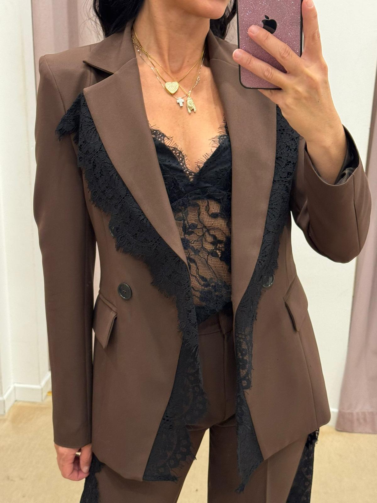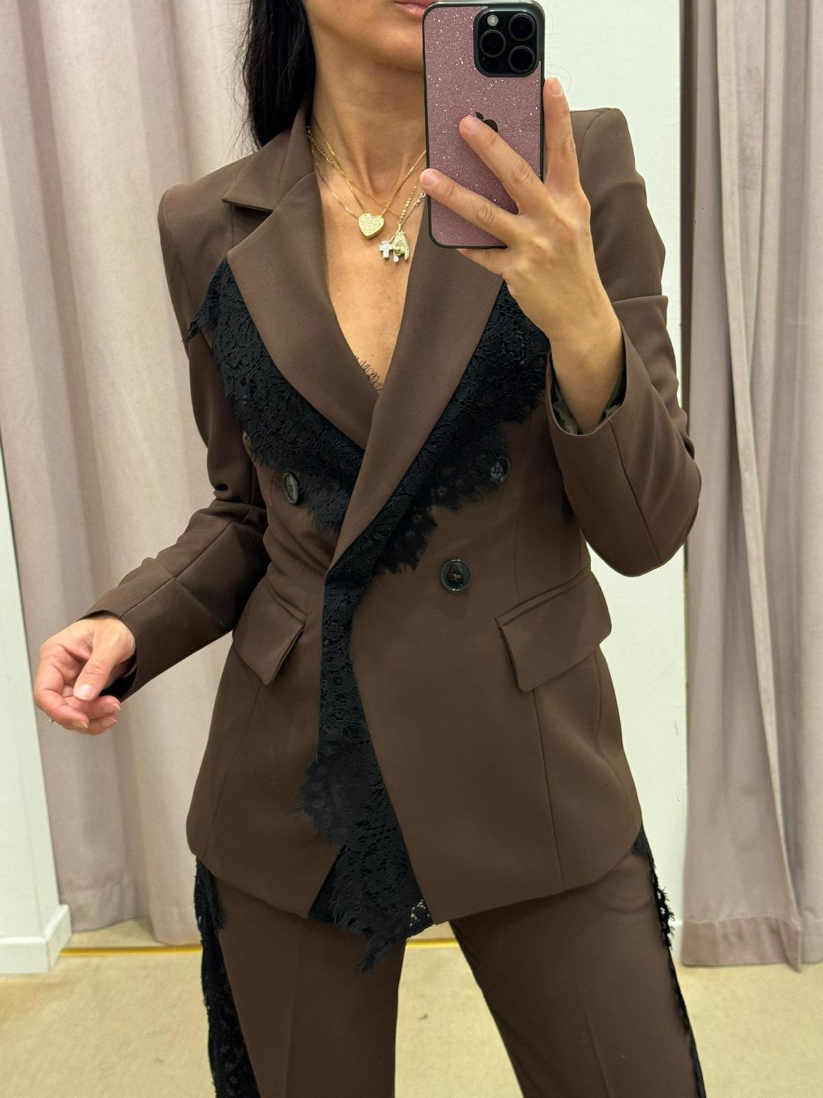 MARYLEY DOPPELREIHENJACKE MIT SPITZENEINSÄTZEN