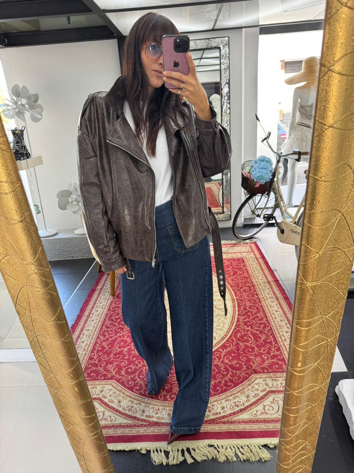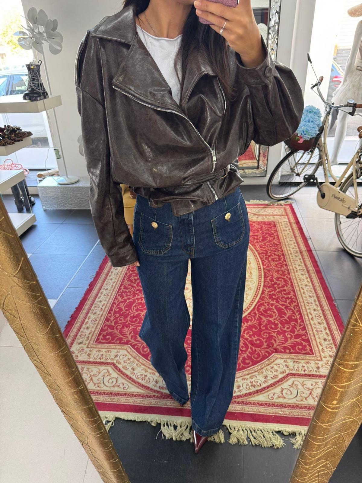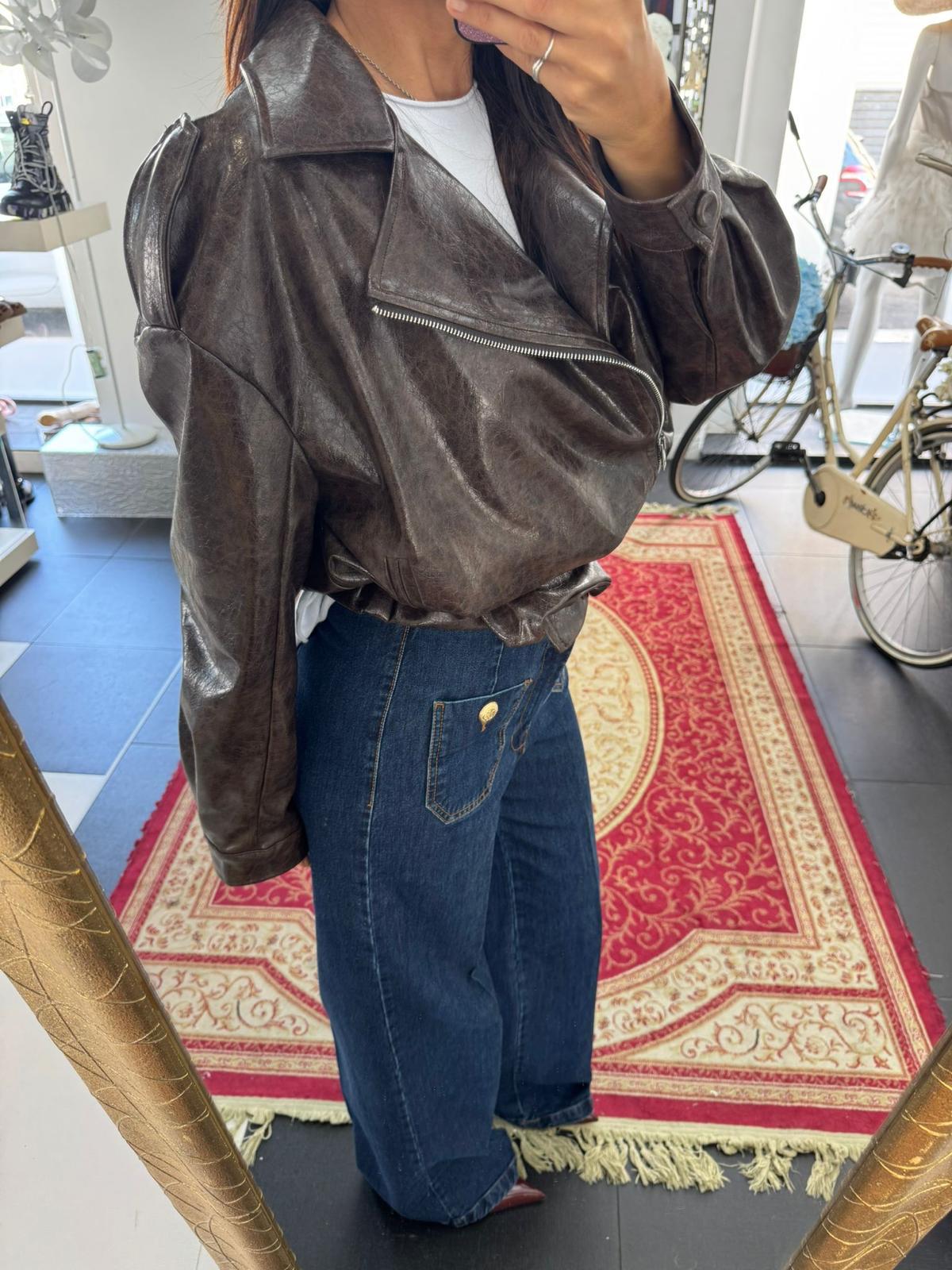 Dunkelbraune Öko-Lederjacke mit Zugsystem