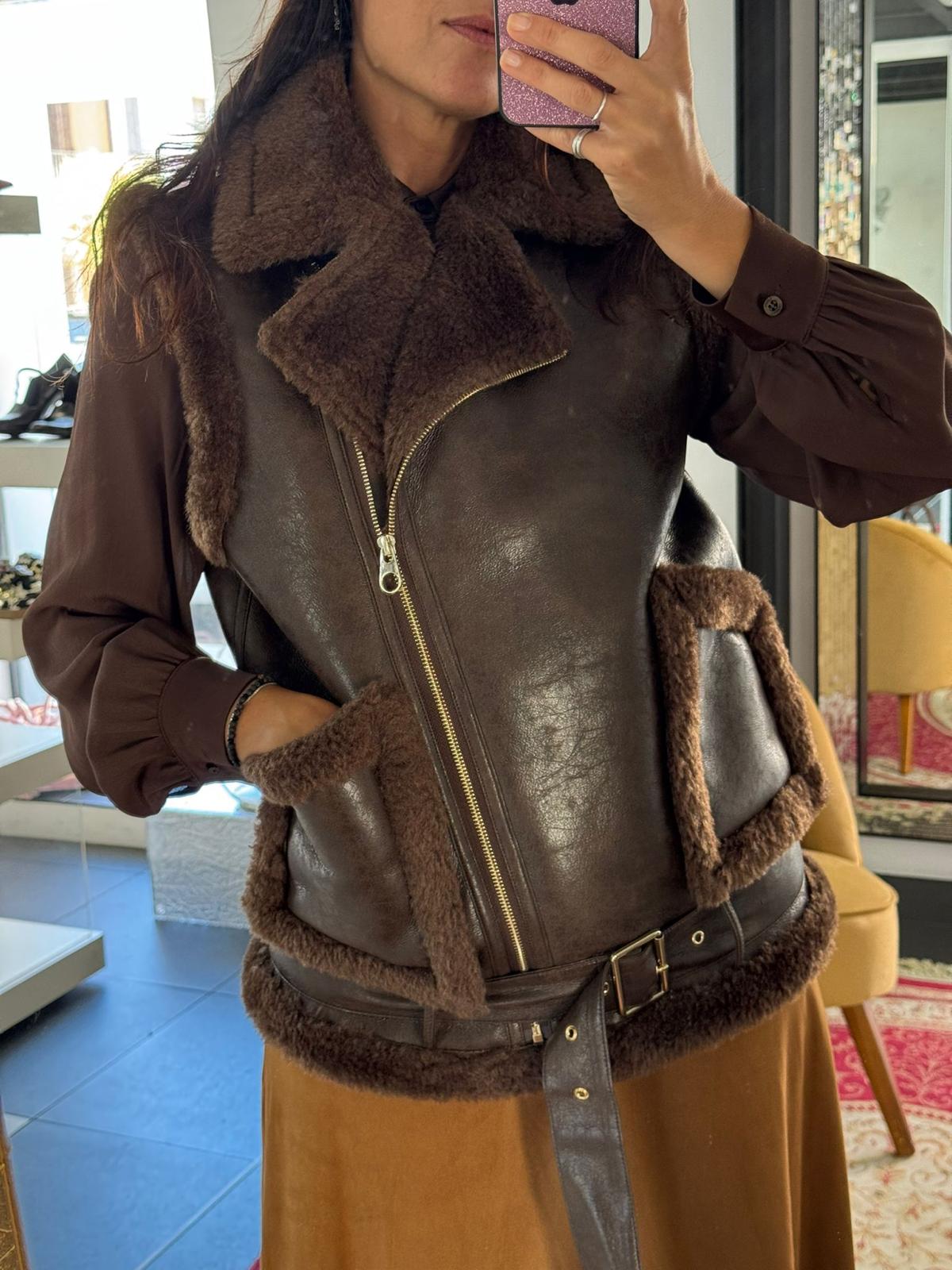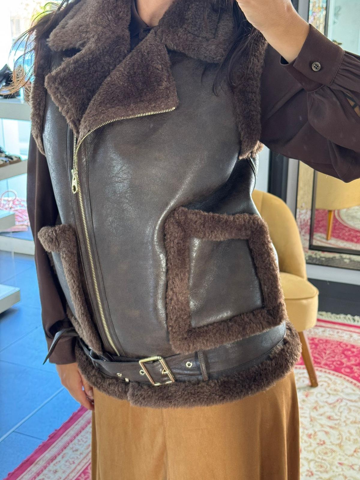 • Material: Außen dunkelbraunes Kunstleder, Innenfutter und Kanten mit weichem Ton-in-Ton-Fell/Teddy bezogen.