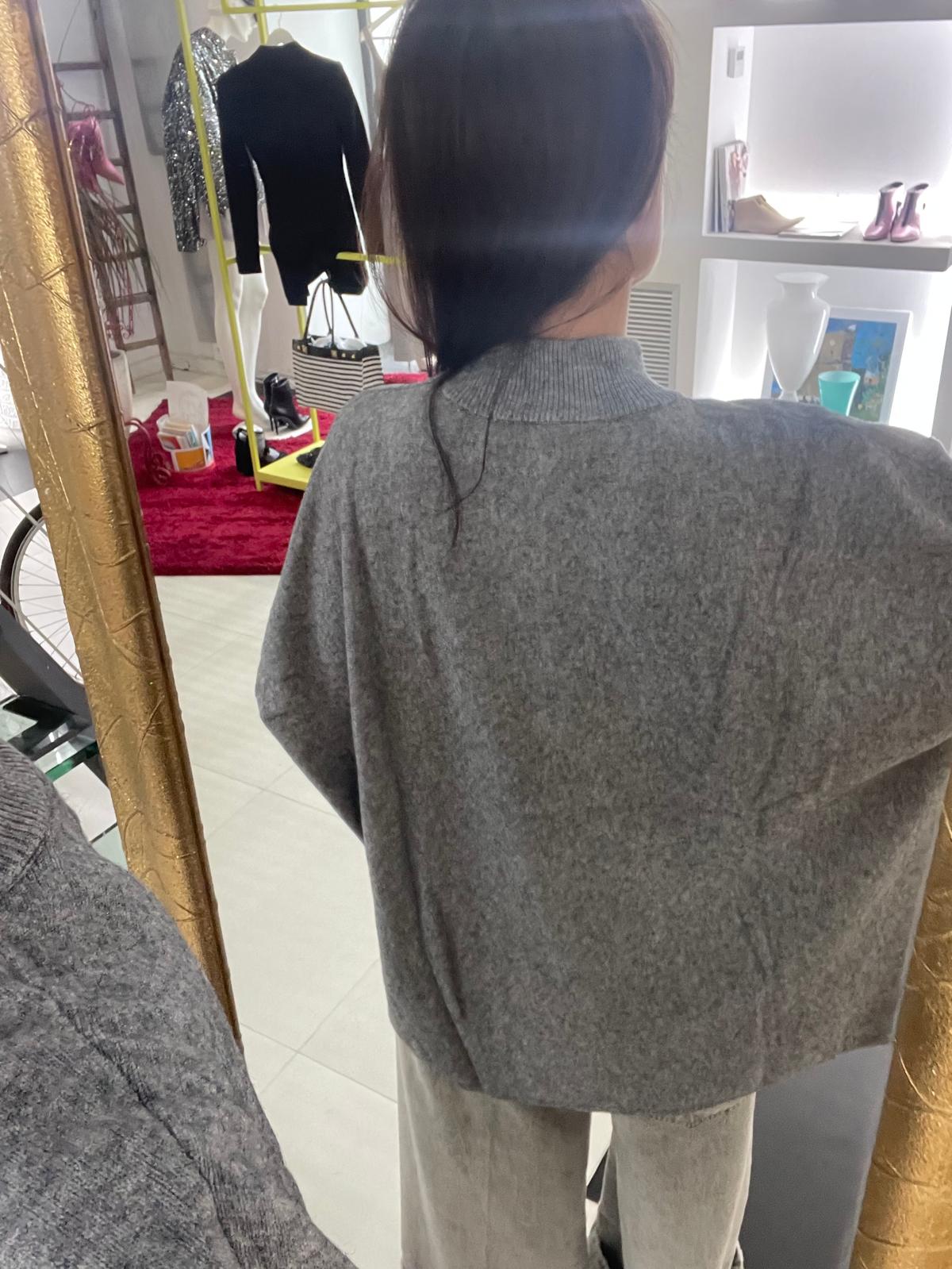 Der gerippte Stehkragen und die Ärmel mit differenziertem Strickmuster verleihen dem Kleidungsstück eine moderne und raffinierte Note, während der weiche Schnitt die Körperlinien umspielt, ohne einzuengen.
